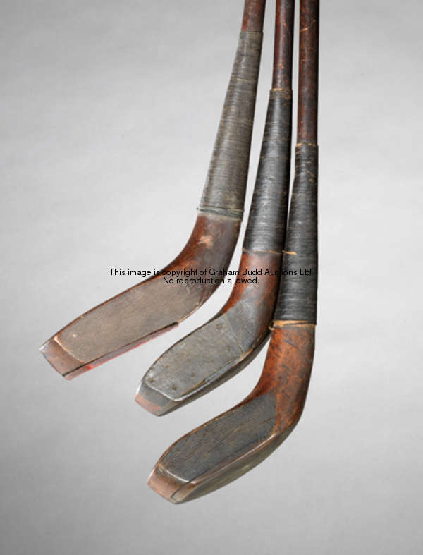 An Andrew Forgan of Glasgow bulger head driver circa 1895, with leather insert, ''tree'' mark, hickory shaft group shot centre, shared illustration