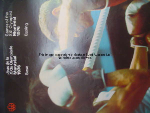 An Olympic sports poster for the 1976 Montreal Olympic Games, colour photograph promoting the boxing events, unframed, 59.5 by 42cm., 23 1/2 by 16 1/2in.