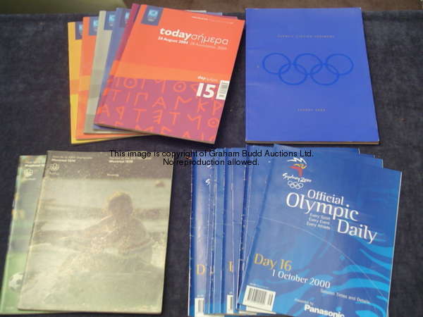 18 official Olympic Games programmes, 2 for Montreal 1976, the football and rowing competitions; 10 various Sydney 2000 including the Closing Ceremony and 9 daily programmes; and 6 daily programmes for Athens in 2004 not illustrated