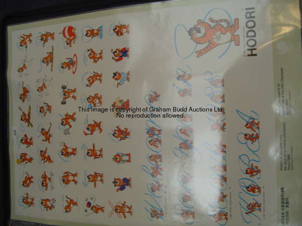 A 1988 Seoul Olympic Games poster, featuring the Official Mascot 'Hodori' the tiger in traditional Olympic pictograms of sports, designed by Kim Hyon, unframed, 84.5 by 59cm., 33 1/4 by 23 1/4in.