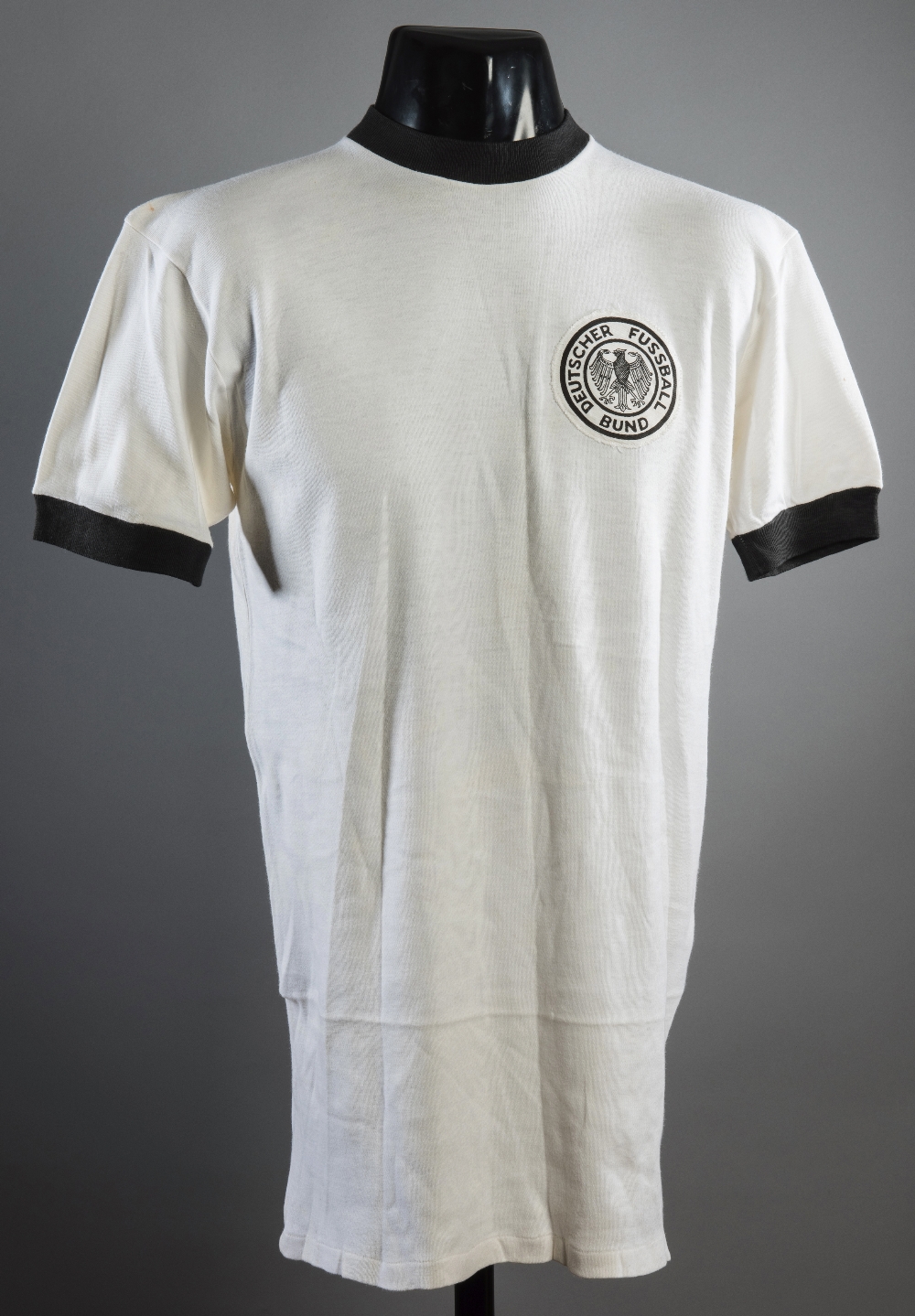 Sigfried Held match-worn West Germany No.10 jersey from the World Cup Final v England at Wembley 30th July 1966, by Umbro, short-sleeved, DFB badge; sold with a colour 1966 World Cup Final picture signed by Held and other West German players (2) Borussia Dortmund's Sigi Held broke into the West Germany international team in 1966 and at the World Cup played in every match, scoring one goal in the Opening Match v Switzerland. He would go on to win 41 caps and also was a member of the 1970 World Cup squad. Provenance: Bought at Bonham's Chester 16th June 2010, lot 515, as part of the Collection of Les Cocker, team-trainer of the England 1966 World Cup football team.