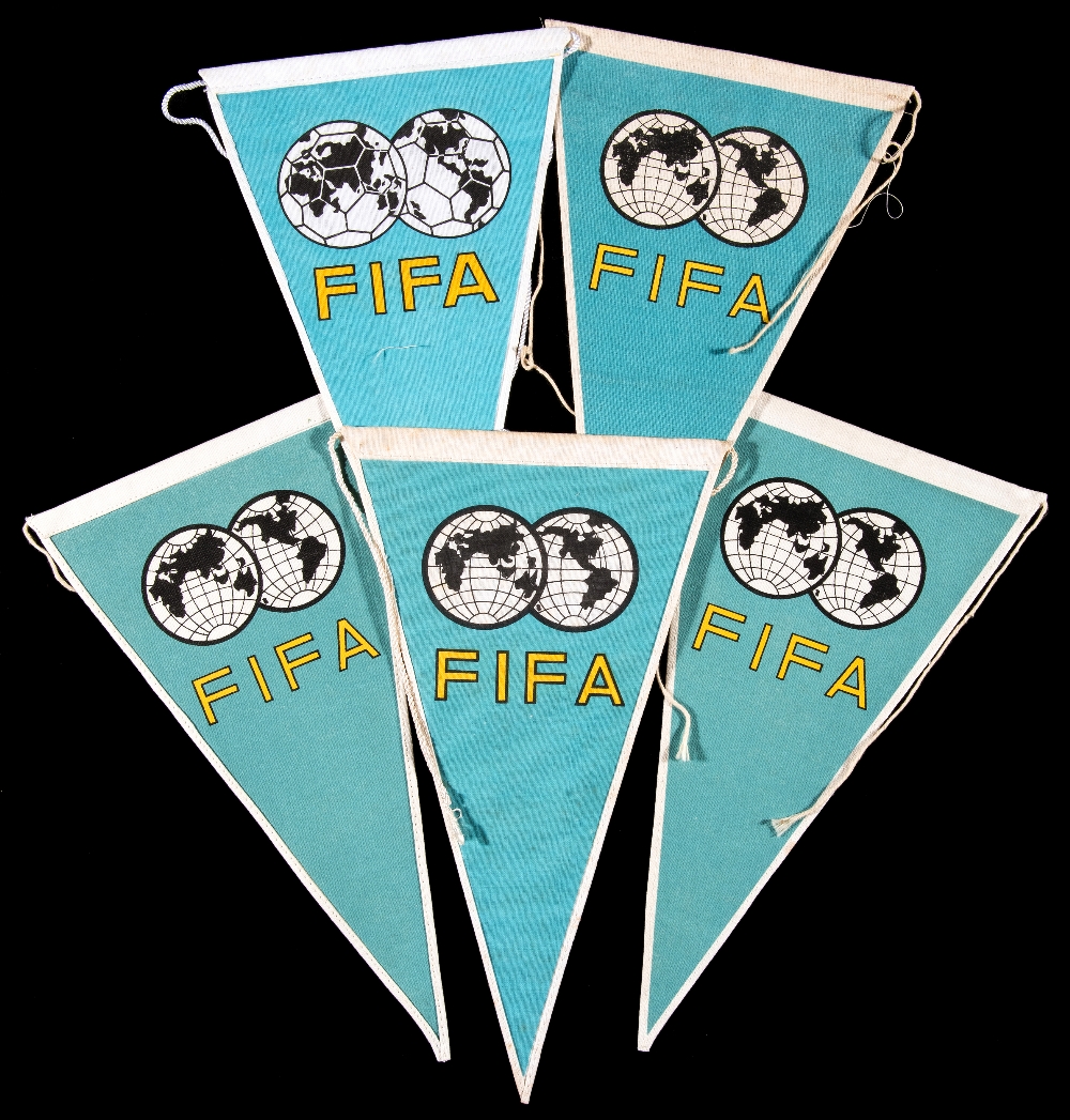 A group of five FIFA pennants issued at the time of the 1970 World Cup