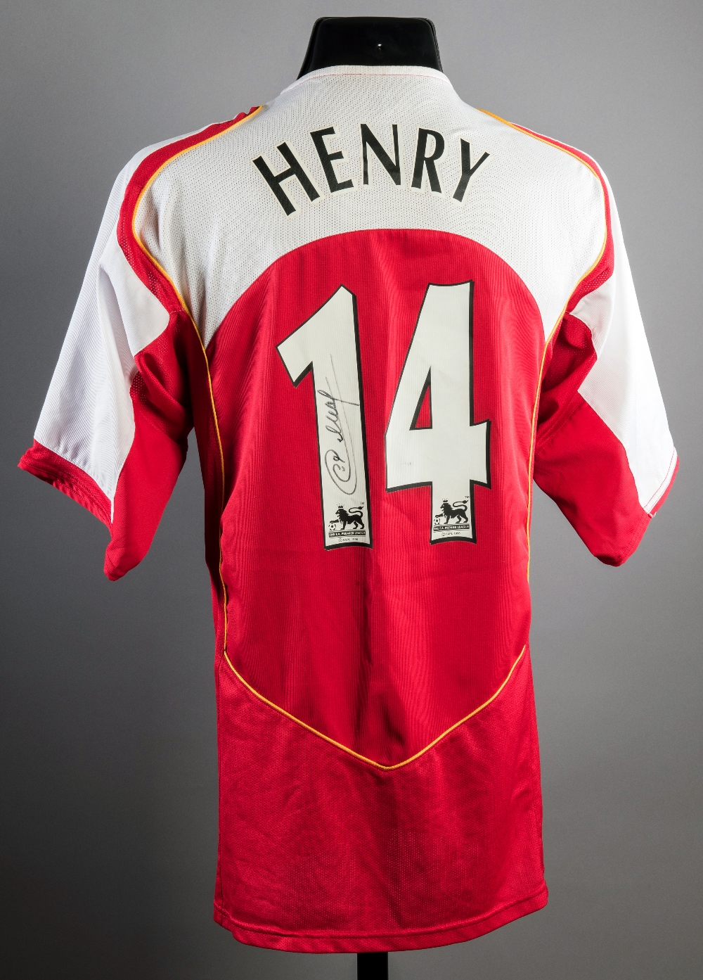 Thierry Henry signed Arsenal No.14 replica home jersey, signed in black marker pen to the reverse No.14,; sold with a COA issued by Arsenal FC in 2007 (2)