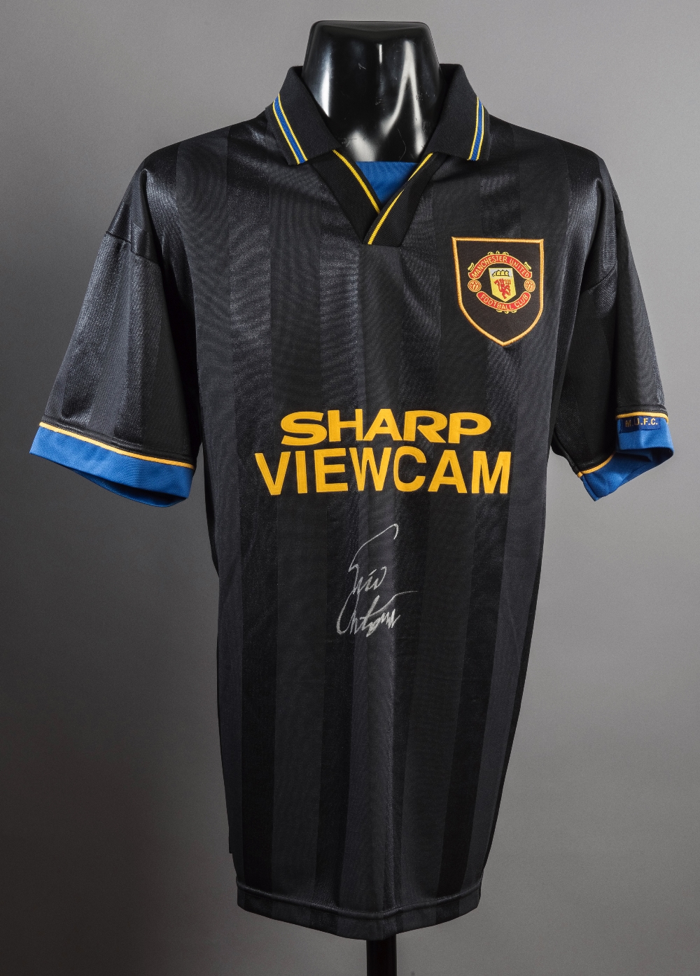 Eric Cantona signed Manchester United 'Kung-Fu' replica jersey, signed in silver marker pen