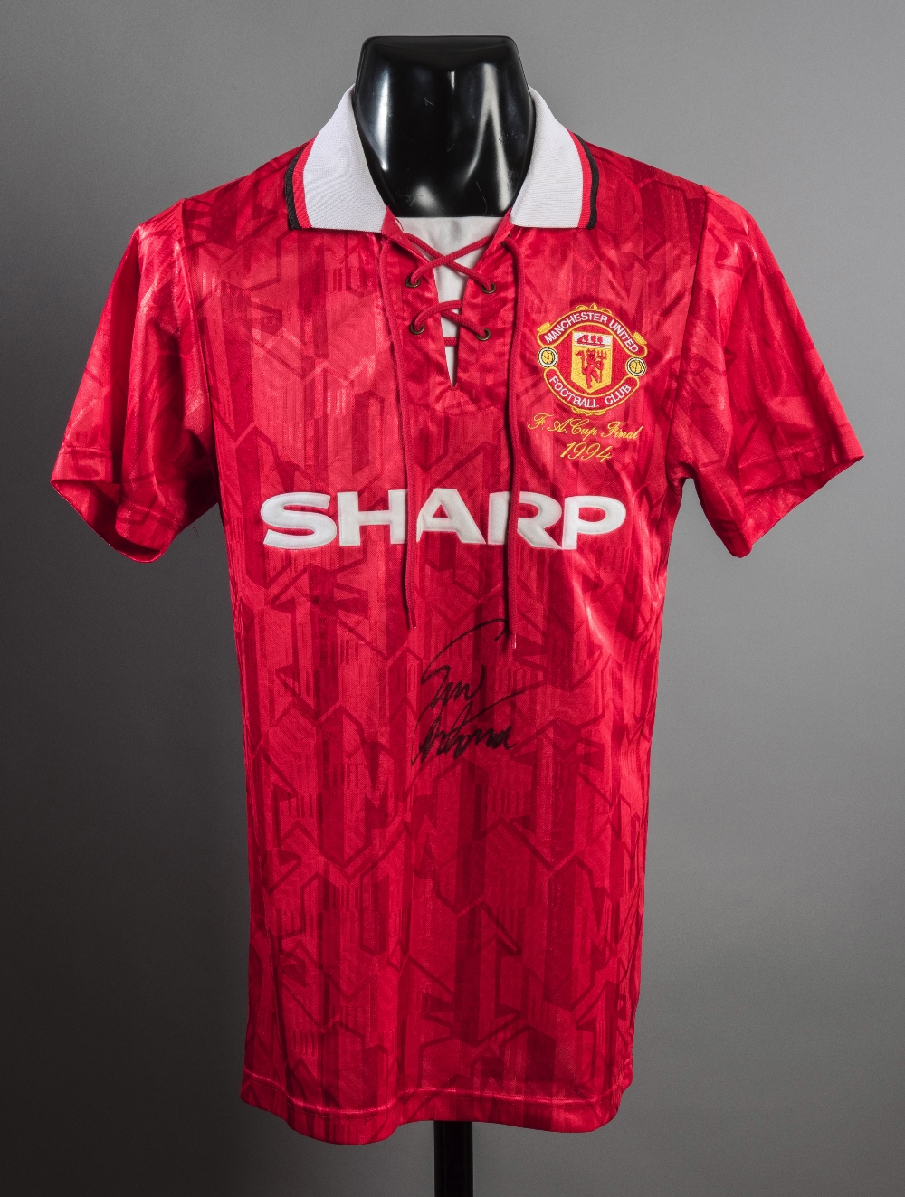Eric Cantona signed replica of his Manchester United 1994 F.A. Cup Final jersey, signed in black marker pen