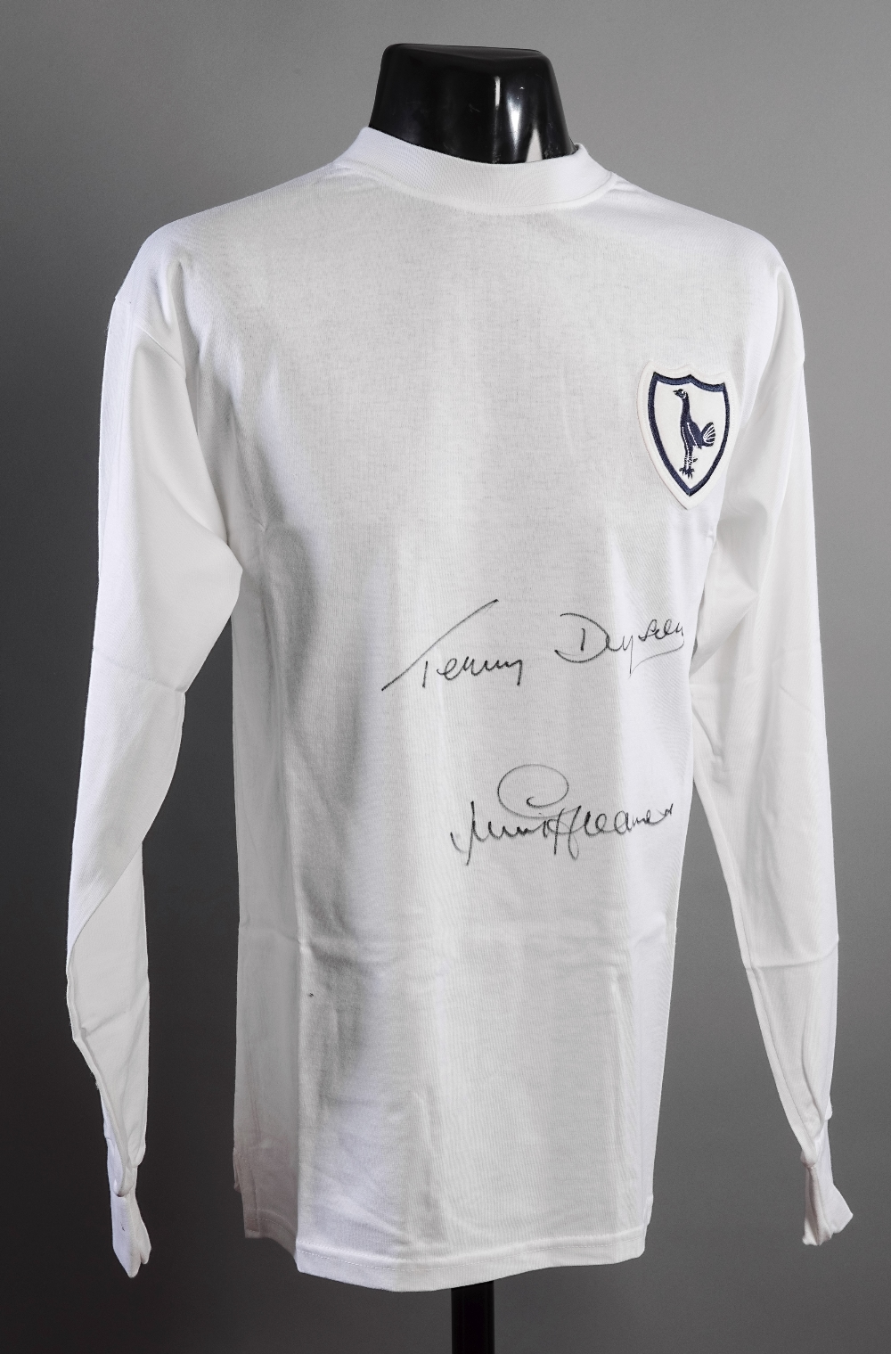 Tottenham Hotspur 1963 European Cup Winner's Cup Final retro jersey double-signed by the Spurs goalscorers Jimmy Greaves & Terry Dyson, signatures in