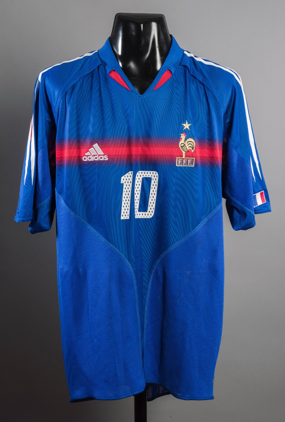 Zinedine Zidane signed replica of a France Euro 2004 jersey, the blue shirt signed to the reverse beside the No.10
