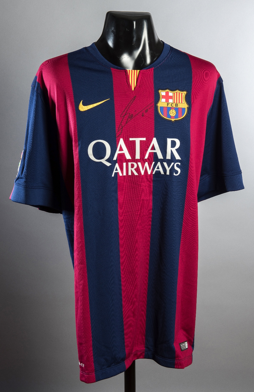 Lionel Messi signed Barcelona replica home jersey, signature in black marker pen
