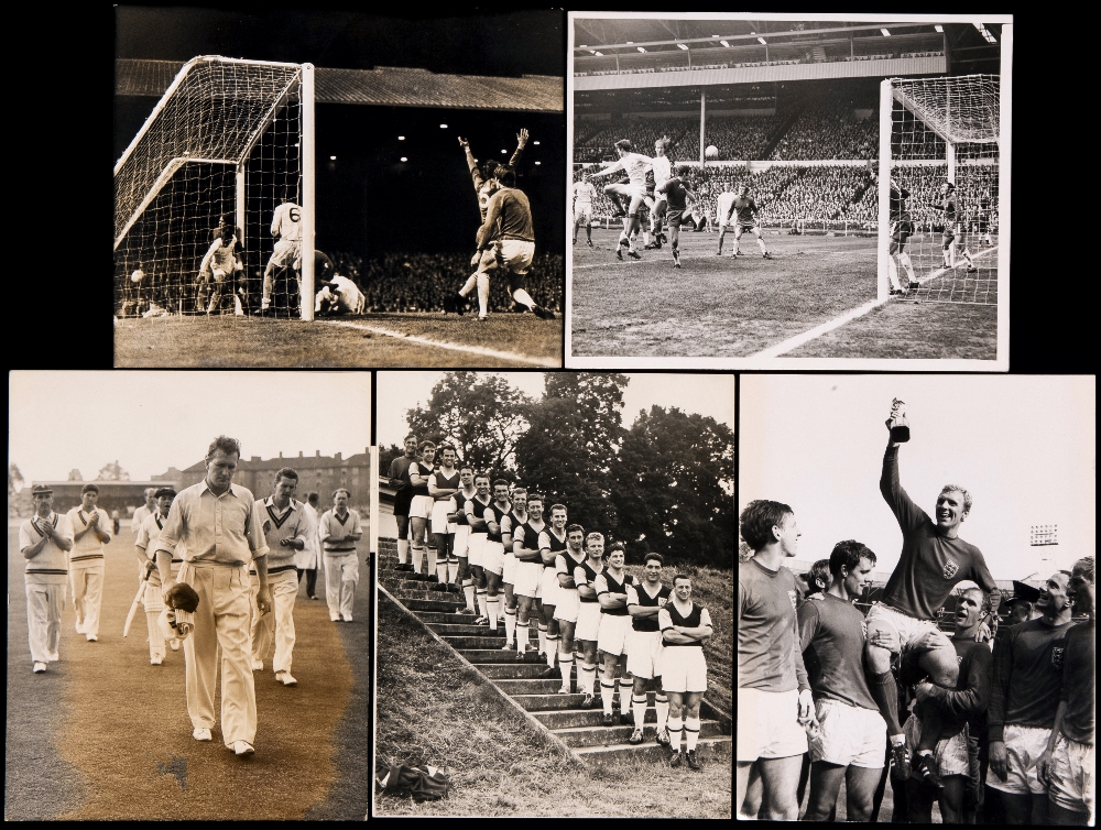 Collection of original b&w press photographs circa 1947-1970, mostly football, some cricket and a little boxing, with very good 1966 World Cup coverag