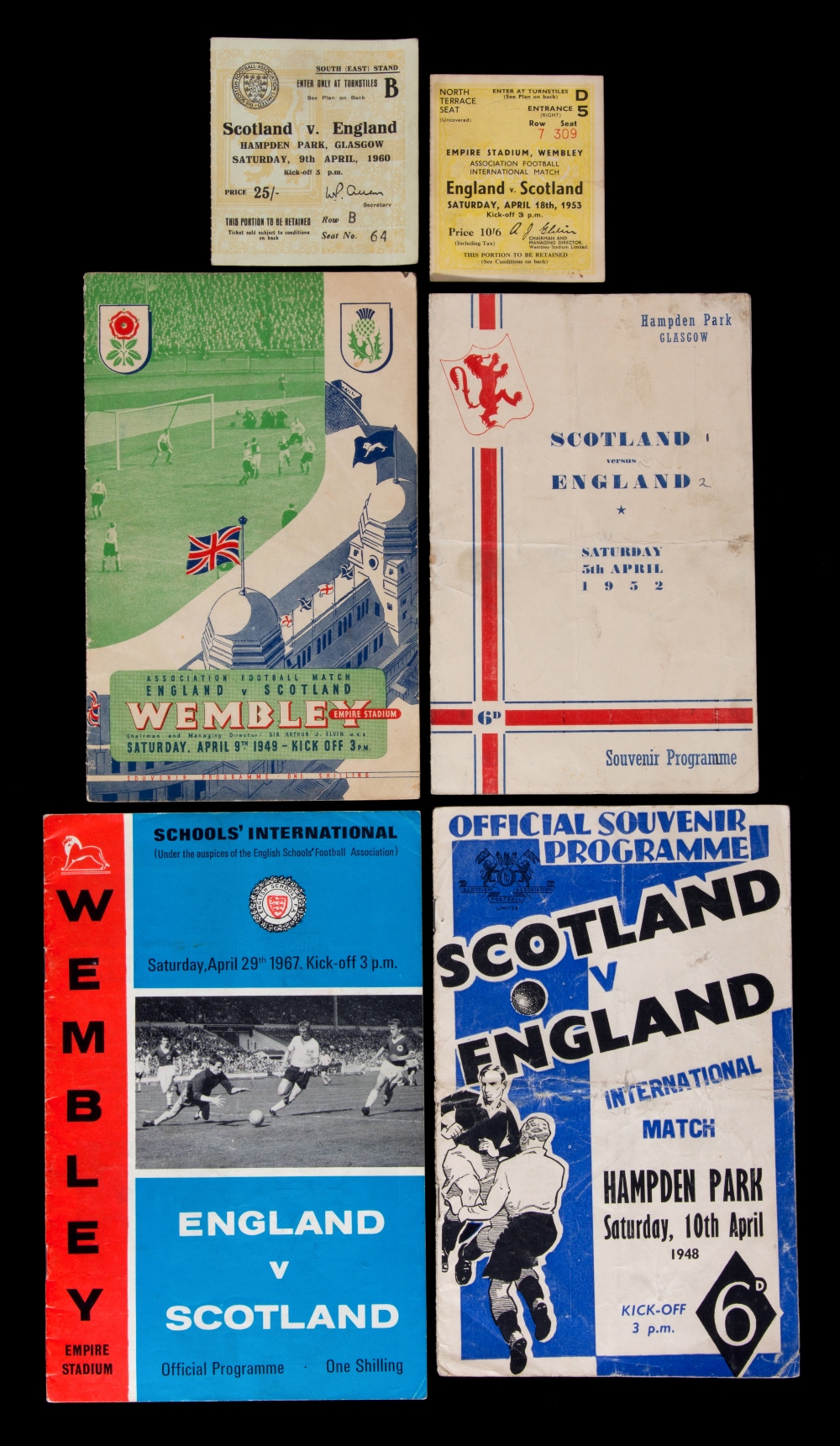 A post-war collection of England v Scotland international programmes and tickets, an unbroken run of programmes for the home internationals staged alt