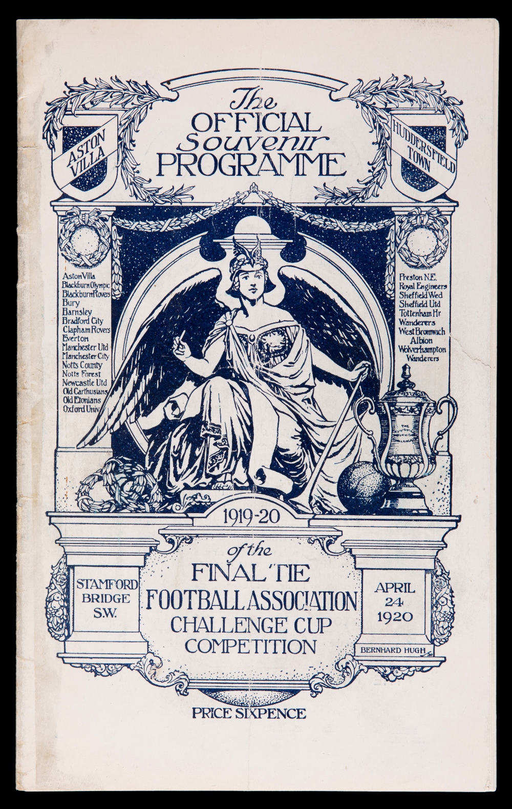 F.A. Cup Final programme Aston Villa v Huddersfield Town played at Stamford Bridge 24th April 1920, staples removed, professional restoration