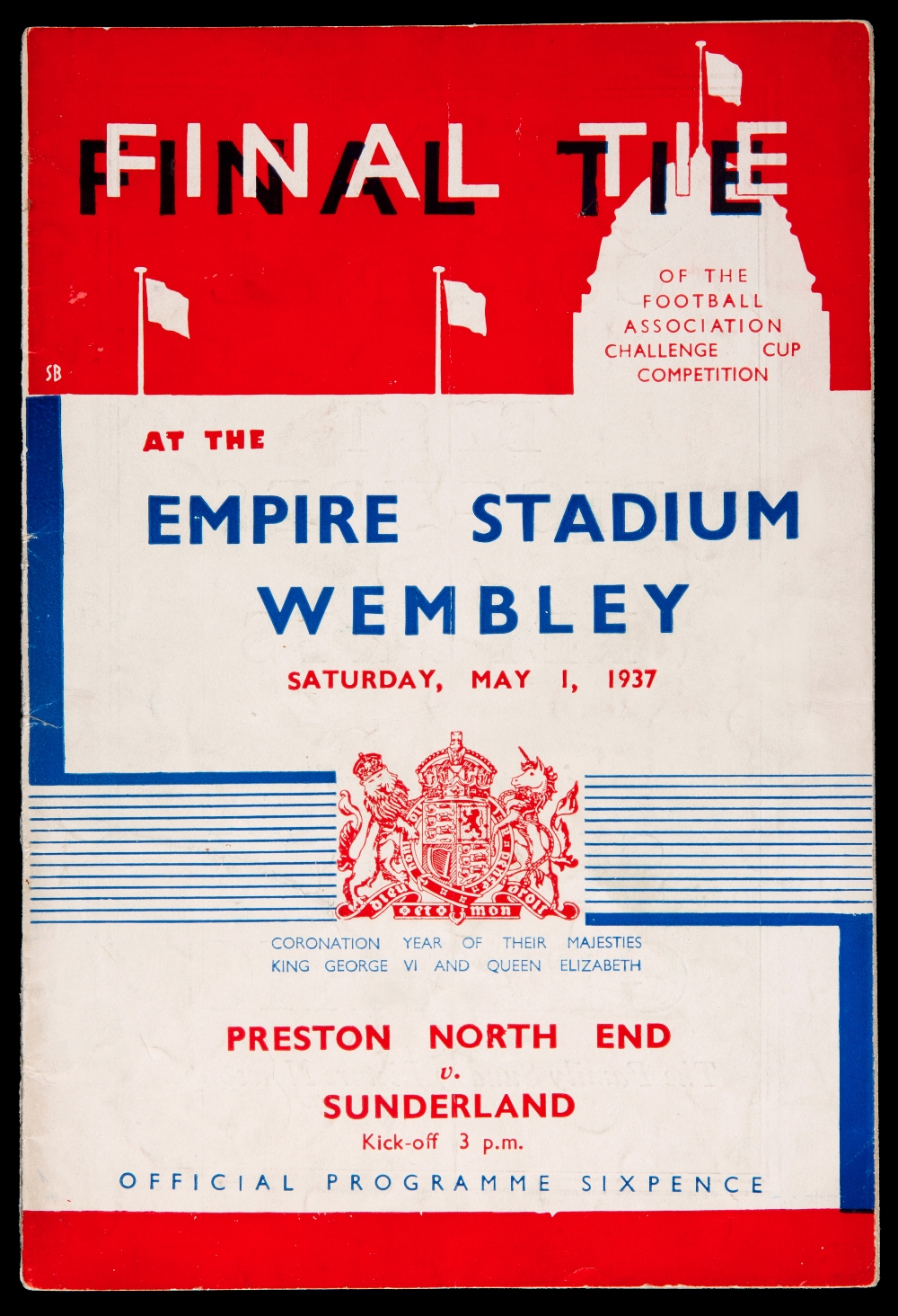 F.A. Cup Final programme Preston North End v Sunderland 1st May 1937, inside sellotaped repair to spine, replacement staples, very light vertical fold