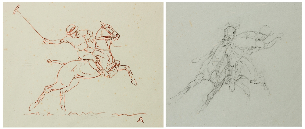 John Arthur Board (1886-1975) POLO PLAYERS (TWO) two pencil sketches, both 19 by 24cm., mounted ready for framing (2)