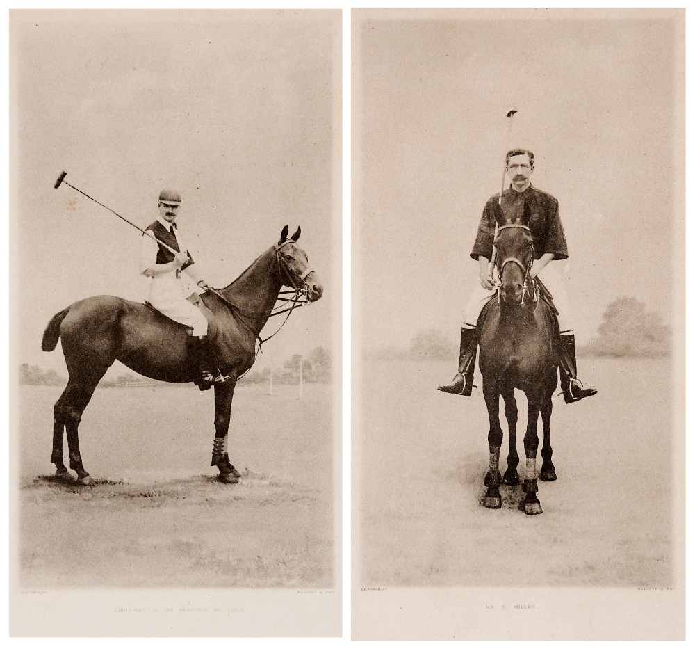A pair of photographic plates of the polo players George Miller and Lt. Col. H de Beauvoir de Lisle, published by Elliott & Fry, uniformly mounted, fr