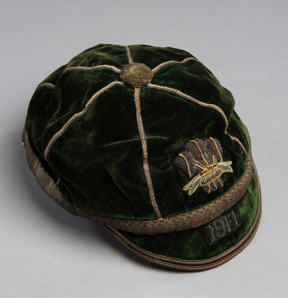 A Wales international representative sporting cap 1911, the green cap with Prince of Wales's Feathers and inscribed 1911 It is not known for which sport this cap was awarded, but the design does not conform to the caps issued for the primary national sports of rugby and football.