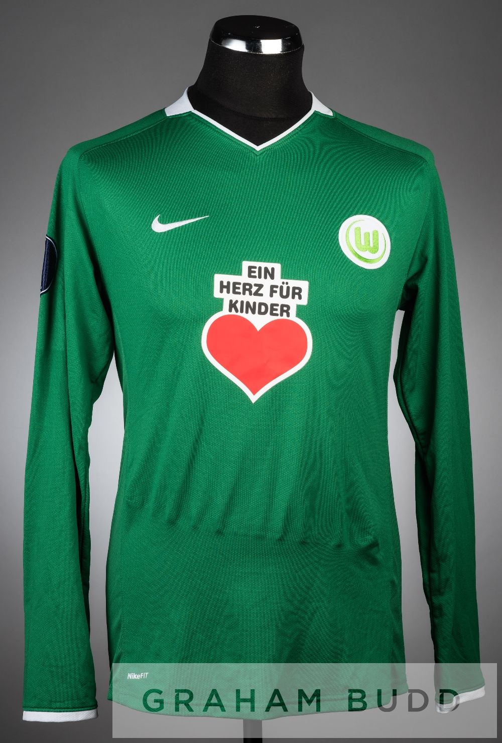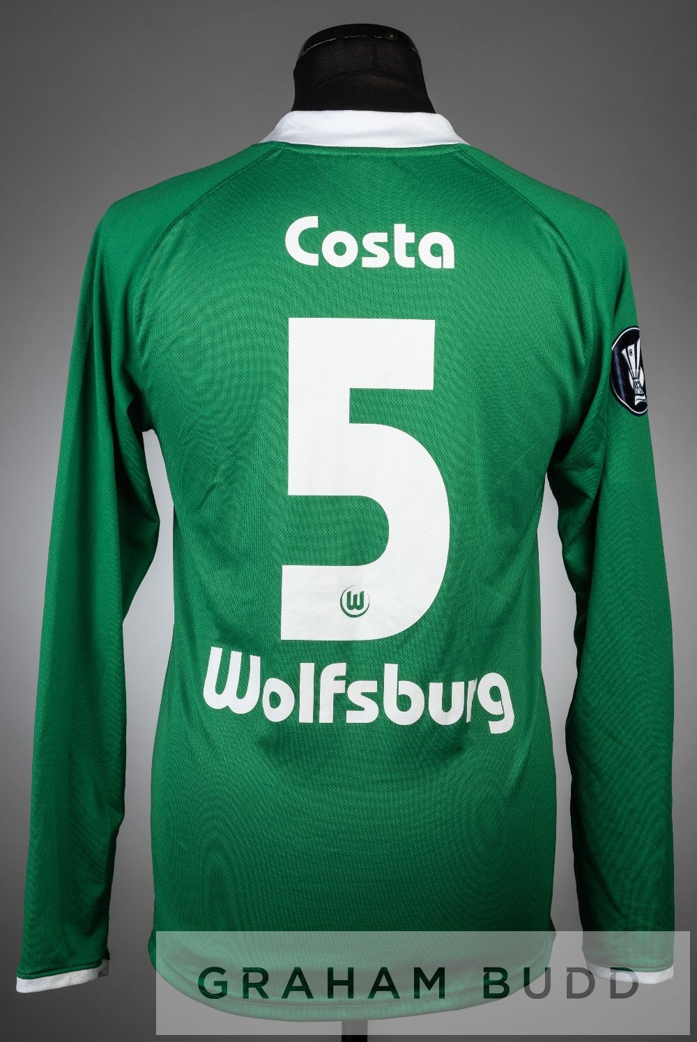 Ricardo Costa green and white VfL Wolfsburg no.5 jersey v Portsmouth in the UEFA Cup Group E at Volkswagen Arena, 4th December 2008, long-sleeved with UEFA CUP sleeve badge, club crest and sponsor logo, reverse lettered COSTA, sold with four-page programme and VFL WOLFSBURG pennant, (3) VfL Wolfsburg defeated Portsmouth 3-2.