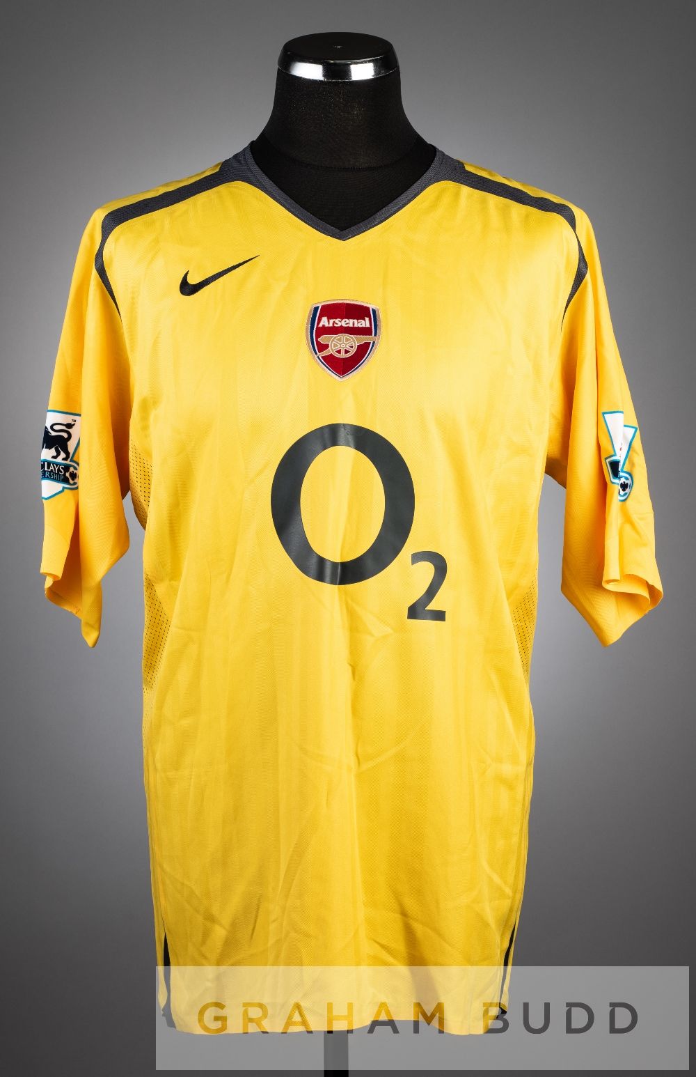 Philippe Senderos signed yellow Arsenal No.20 away jersey, season 2005-06, short-sleeved, with BARCLAYS PREMIERSHIP sleeve badges, with club crest and sponsor logo, reverse lettered SENDEROS, signed in black marker pen on the reverse, size XL Philippe Senderos played for Arsenal from 2003 to 2010, making 64 appearances, scoring four goals and was on loan to AC Milan and Everton during this period.