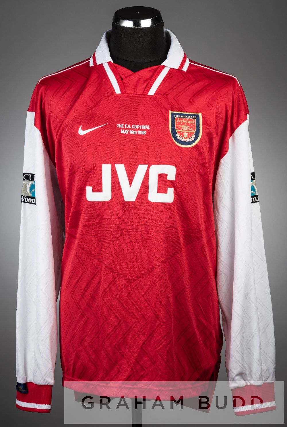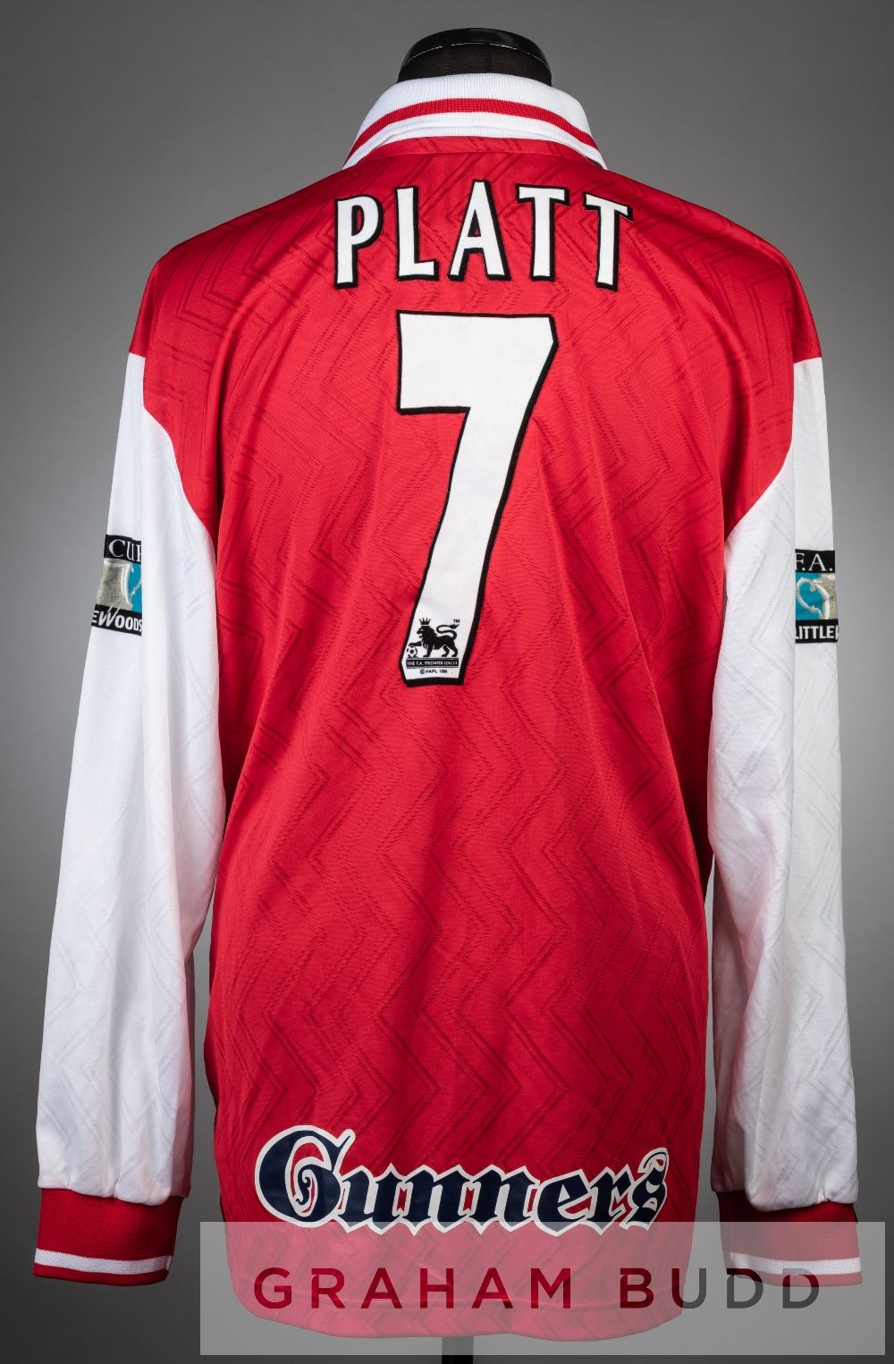 David Platt red and white Arsenal no.7 home jersey v Newcastle United in the FA Cup Final at Wembley, 16th May 1998, unworn long-sleeved spare, with