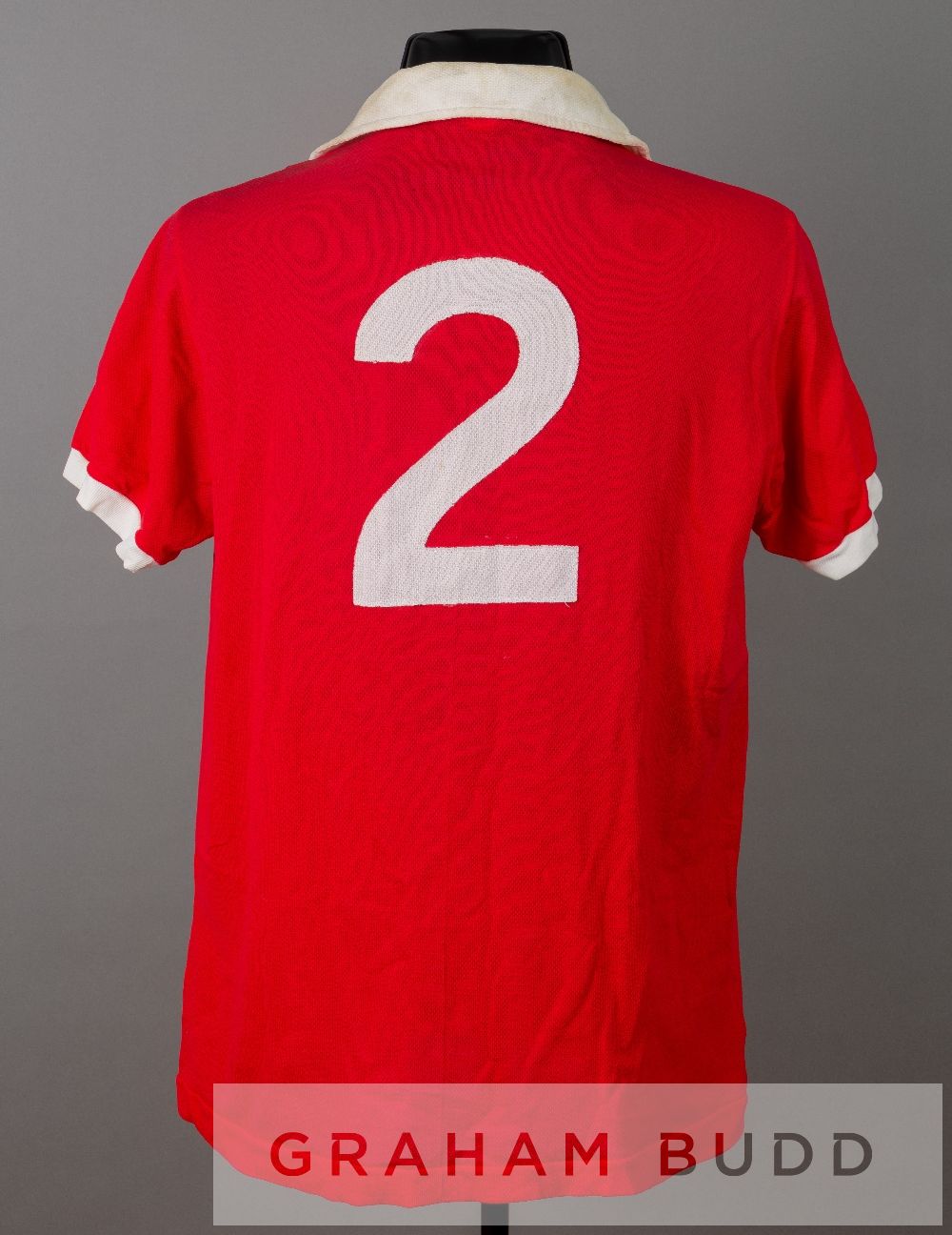 Clive Payne red and white with black stripe AFC Bournemouth no.2 jersey, season 1974-75, short-sleeved with embroidered club crest, reverse numbered 2, jersey bears wear and stains to the collar