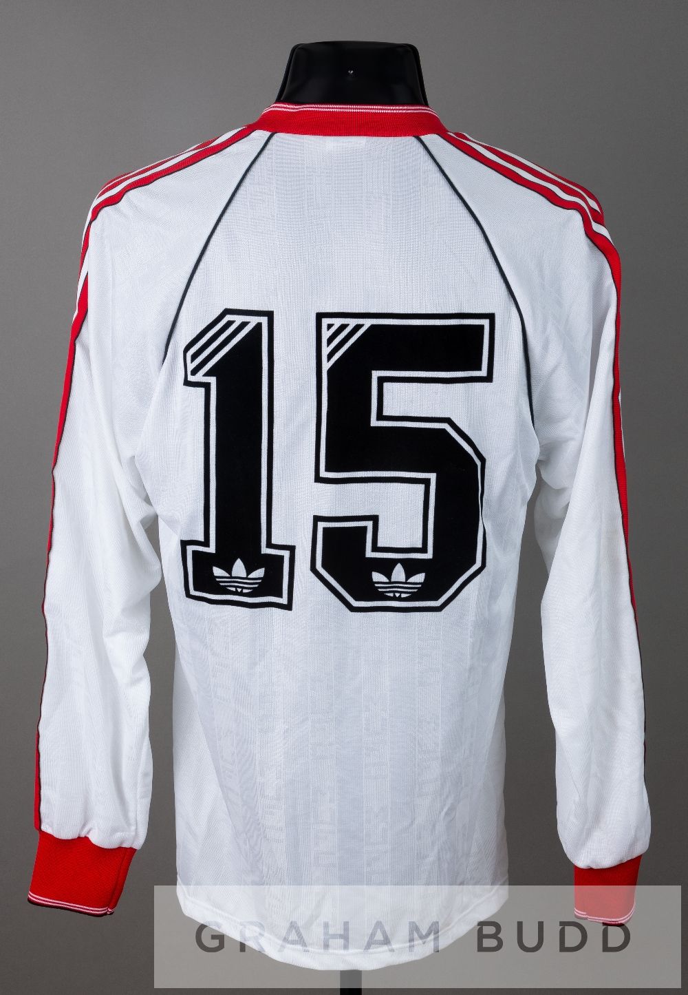 White Manchester United no.15 substitute's jersey from the 1990 F.A. Cup Final, by Adidas, long-sleeved unused substitute's issue, embroidered club c