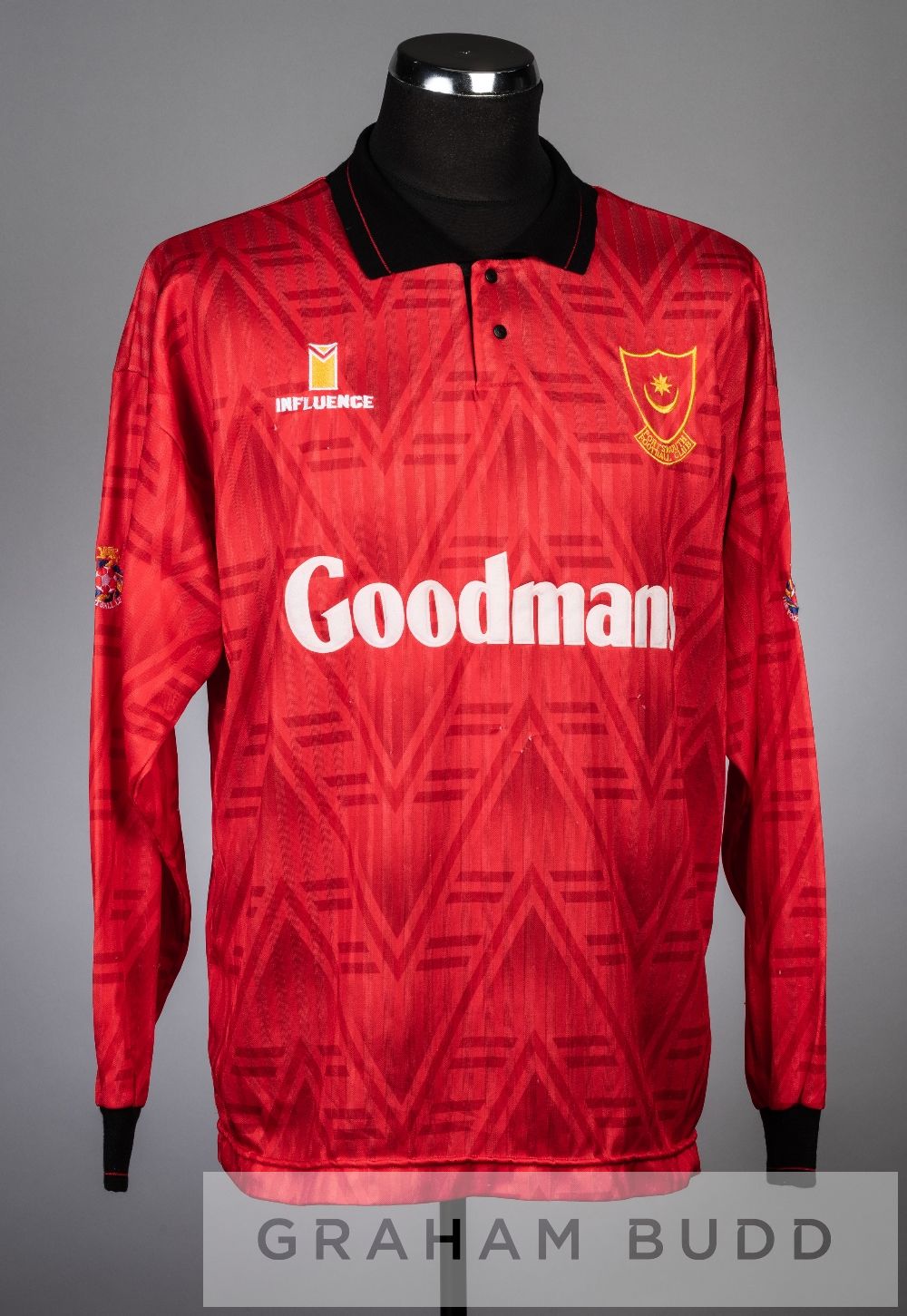 Red and black Portsmouth no.14 substitutes away jersey, season 1992-93, long-sleeved with THE FOOTBALL LEAGUE embroidered sleeve badges, club crest and sponsor logo, reverse numbered 14