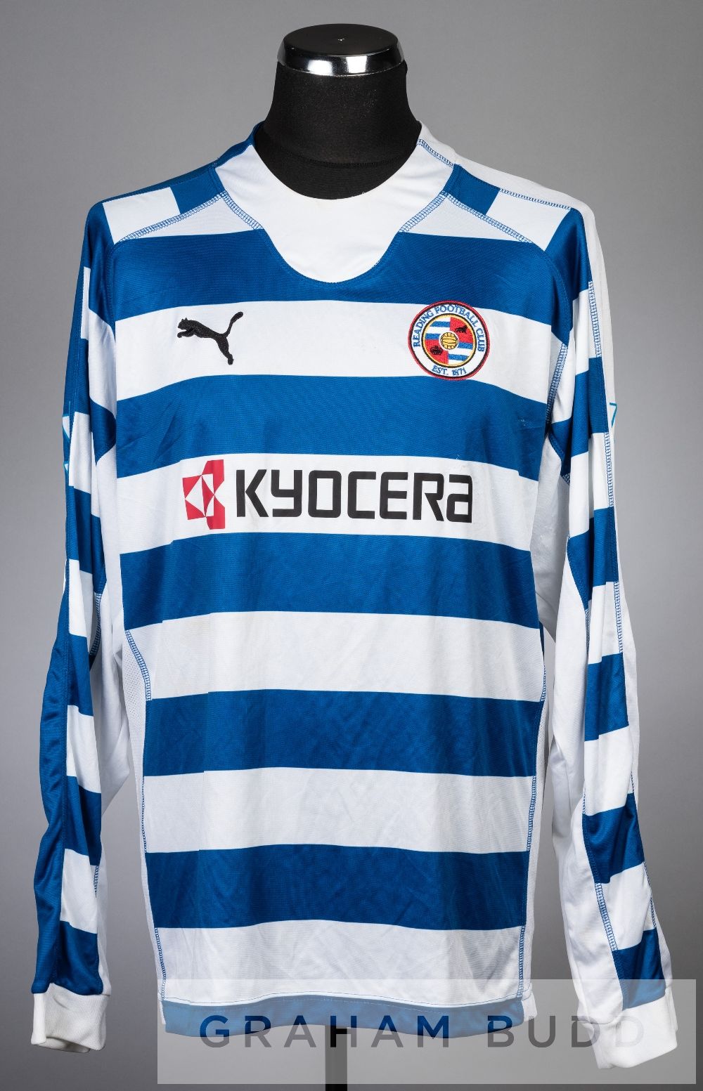 Graeme Murty blue and white striped Reading no.2 home jersey, season 2007-08, long-sleeved with BARCLAYS PREMIER LEAGUE sleeve badges, club crest and sponsor logo, reverse lettered MURTY, signs of wear Provenance: Linvoy Primus Portsmouth swap jersey's.