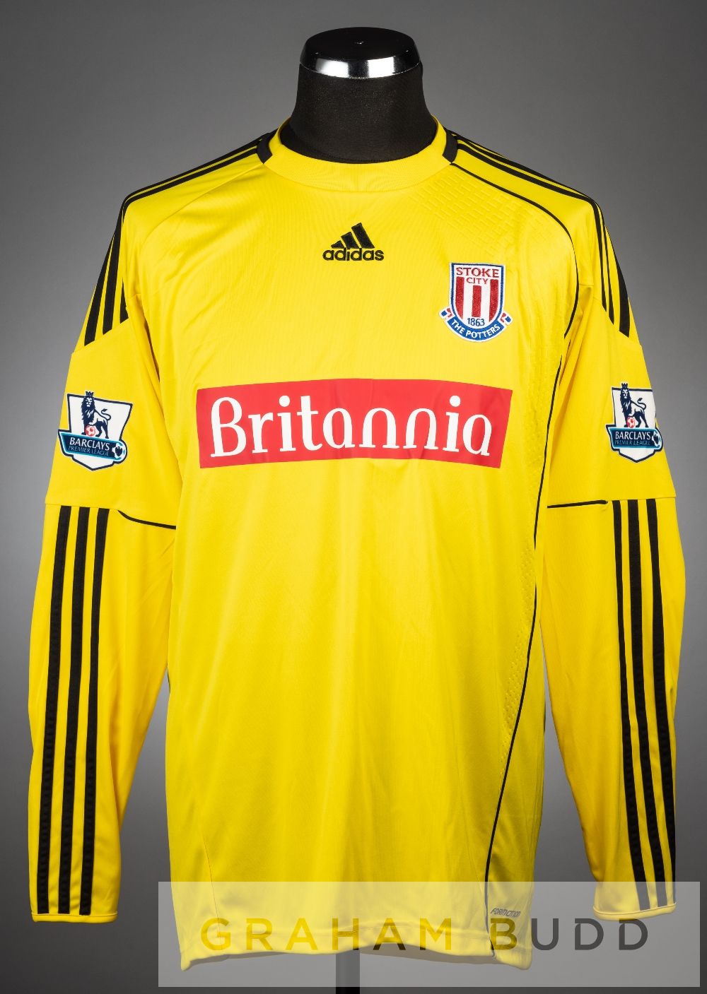 Asmir Begovic signed yellow Stoke City no.1 goalkeeper's change jersey, season 2010-11, long-sleeved with padded elbows, BARCLAYS PREMIER LEAGUE slee