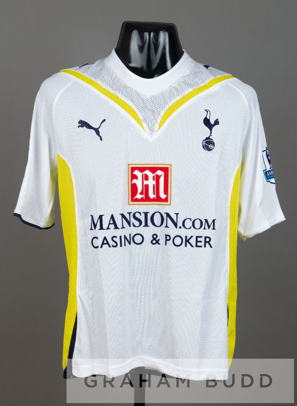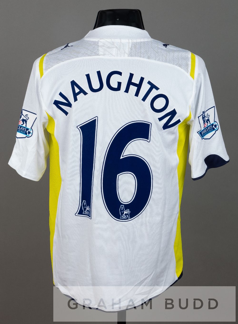 Kylie Naughton white and yellow Tottenham Hotspur no.16, season 2009-10, short-sleeved with BARCLAYS PREMIER LEAGUE sleeve badges, club crest and sponsor logo, reverse lettered NAUGHTON