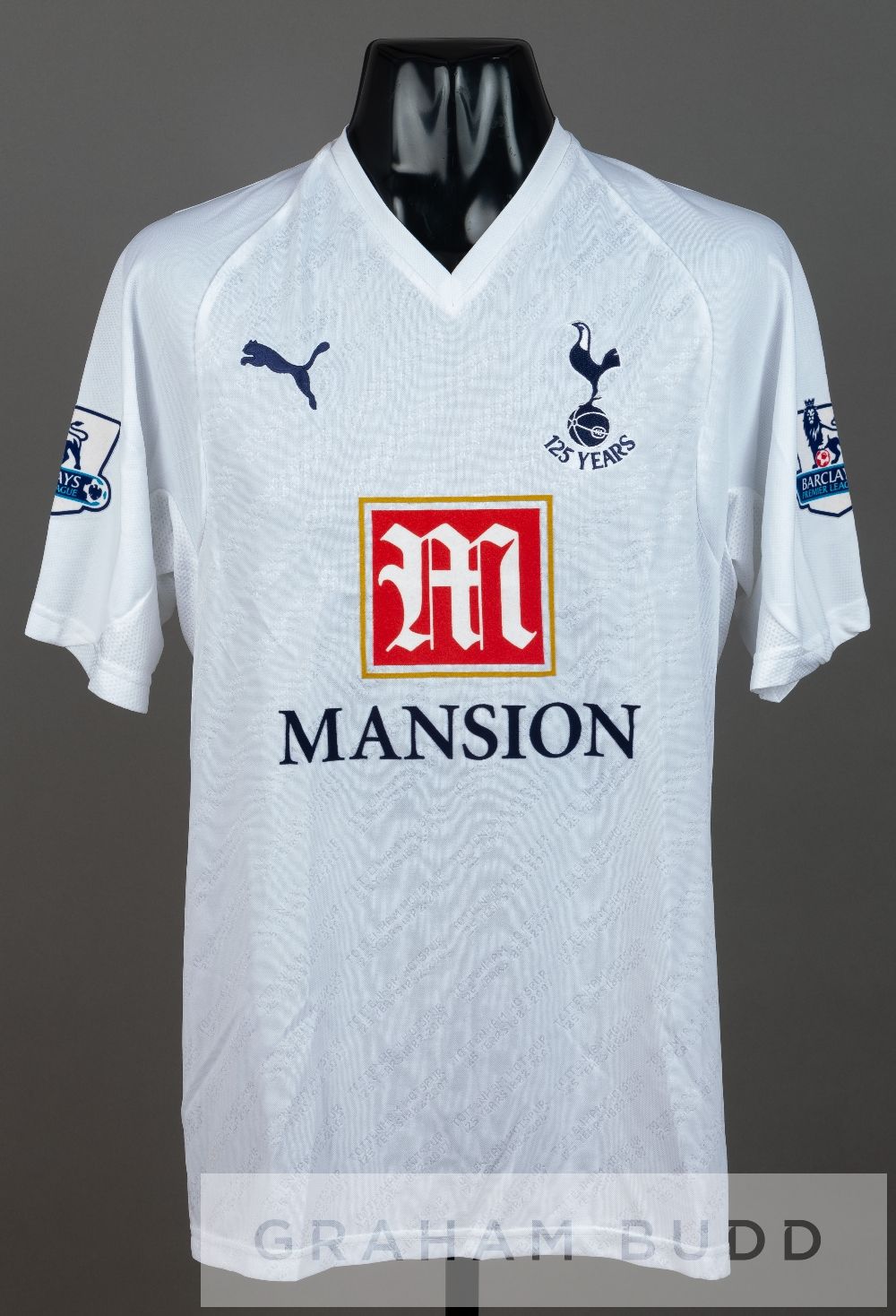Lee Young-Pyo signed white Tottenham Hotspur no.3 home jersey, season 2007-08, short-sleeved with BARCLAYS PREMIER LEAGUE sleeve badges, club crest with embroidered 125 YEARS and sponsor logo, reverse lettered Y.P. LEE, signed in black marker pen to reverse