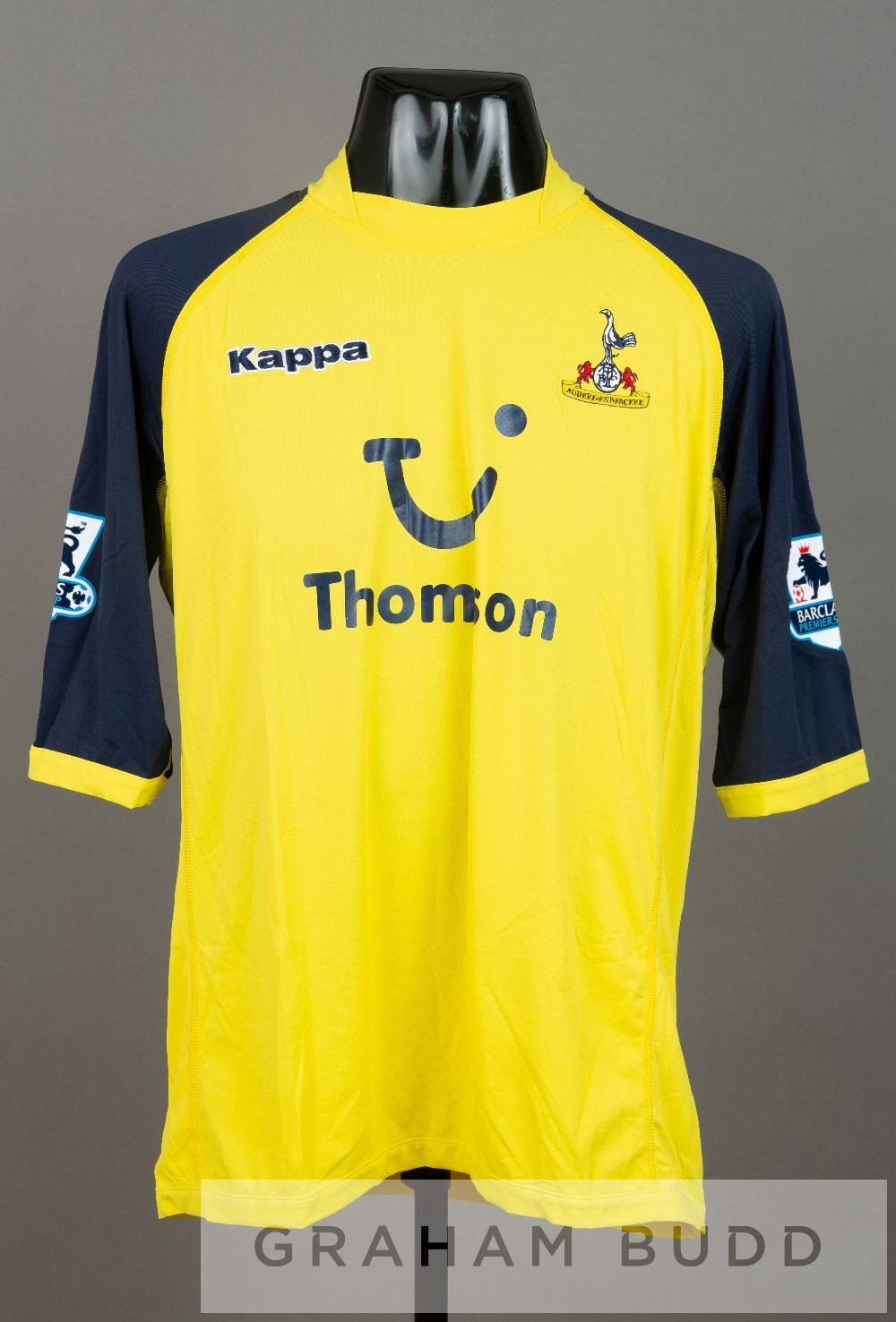 Calum Davenport yellow and navy Tottenham Hotspur no.27 third change jersey, season 2005-06, short-sleeved with BARCLAYS PREMIERSHIP sleeve badges, c