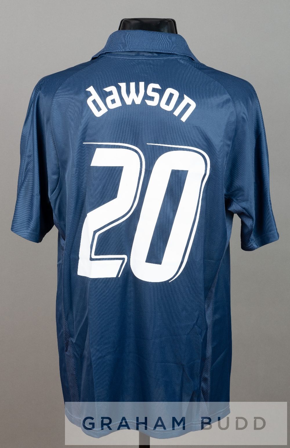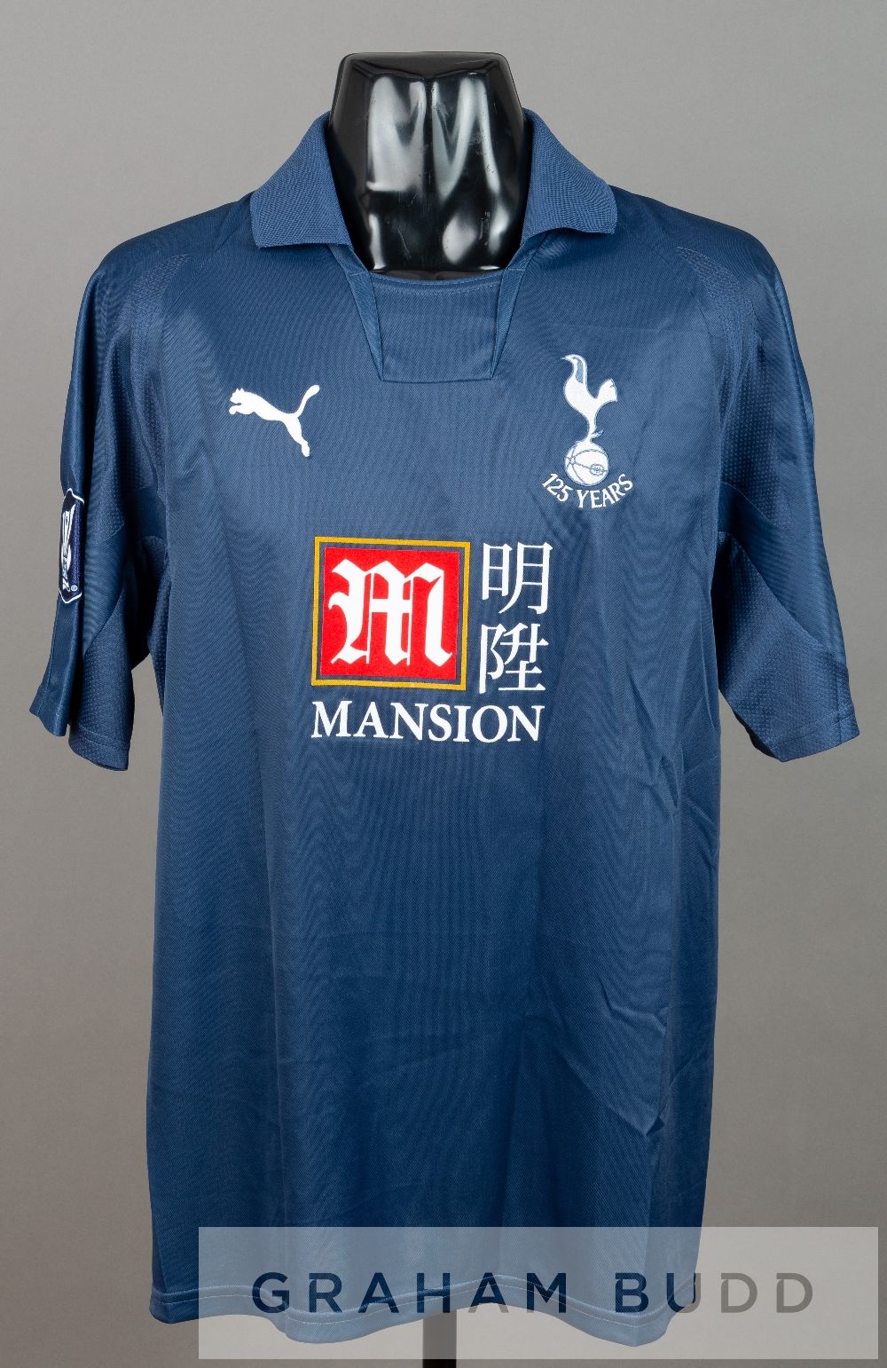 Michael Dawson navy Tottenham Hotspur no.20 away jersey, season 2007-08, short-sleeved with UEFA CUP sleeve badge, club crest embroidered with 125 YEARS and sponsor logo, reverse lettered DAWSON