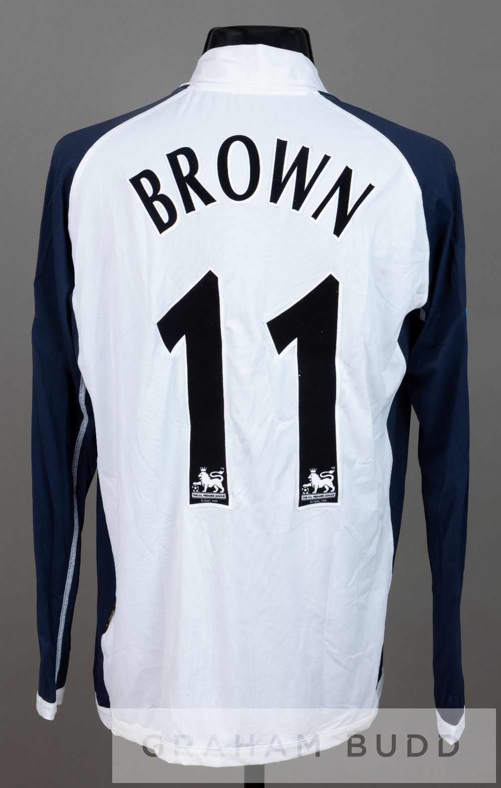 Michael Brown squad signed white and navy Tottenham Hotspur no.11 home jersey, season 2005-06, long-sleeved with BARCLAYS PREMIERSHIP sleeve badges,