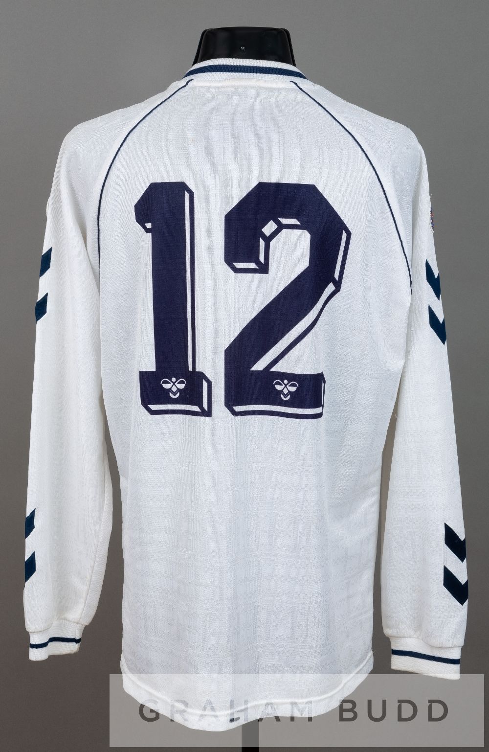 Paul Walsh squad signed white Tottenham Hotspur no.12 home jersey in the FA Cup semi-final v Arsenal, at Wembley 14th April 1991, long-sleeve spare w