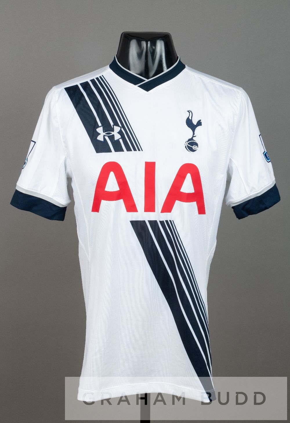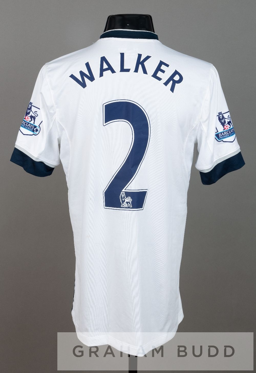 Kyle Walker white Tottenham Hotspur no.2 home jersey v Southampton at White Hart Lane, 8th May 2016, match-worn short-sleeved with BARCLAYS PREMIERSHIP sleeve badges, club crest and sponsor logo, reverse lettered WALKER, bears slight stains to reverse, with Kyle Walker signed note certifying the authenticity of jersey on Tottenham Hotspur letterhead and a 8 by 12in. colour photograph, (3) Southampton defeated Tottenham Hotspur 2-1.