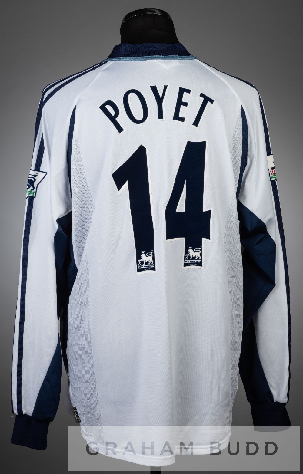 Gus Poyet white Tottenham Hotspur No.14 home jersey season 2001-02, long-sleeved with THE F.A. PREMIER LEAGUE sleeve badges, club crest and sponsor logo, reverse lettered POYET