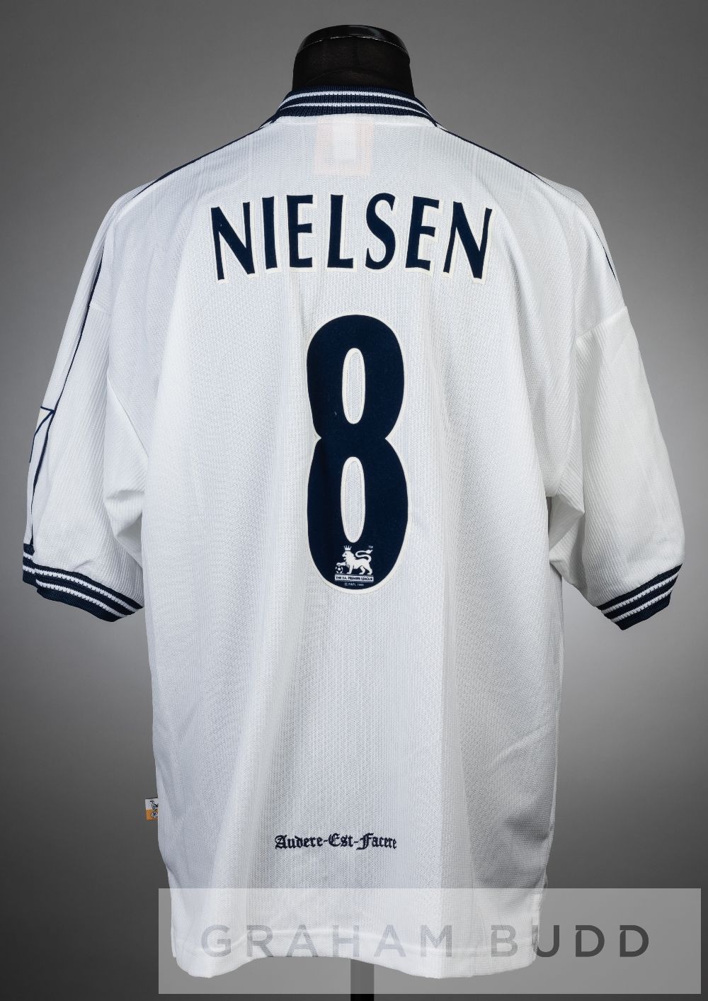 Alan Nielsen white Tottenham Hotspur No.8 jersey circa 1998, short-sleeved with F.A. Premier League badges, club crest and sponsor logo, reverse lettered NIELSEN