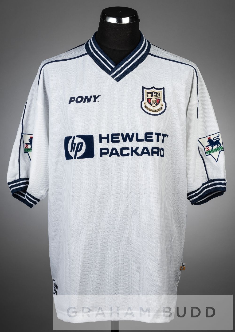 Alan Nielsen white Tottenham Hotspur No.8 jersey circa 1998, short-sleeved with F.A. Premier League badges, club crest and sponsor logo, reverse lett