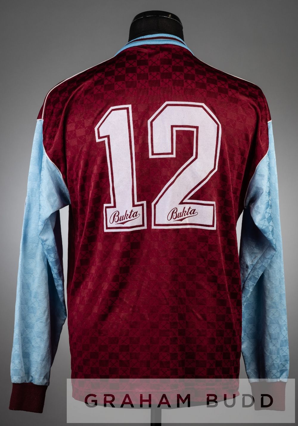 Claret and blue West Ham United no.12 substitute's home jersey, season 1989-90, signed by the West Ham United scout and former player Stuart Morgan,