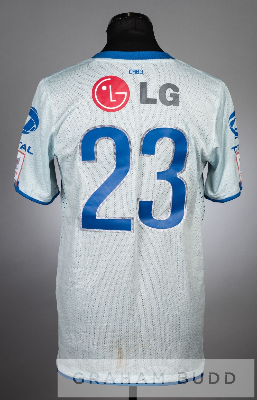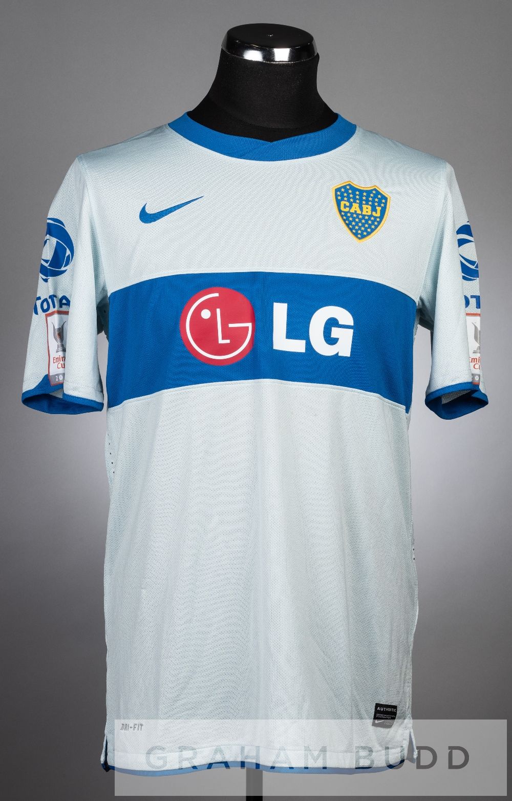 Facundo Roncaglia pale blue Boca Juniors no.23 jersey v Arsenal in the Emirates Cup at Emirates Stadium, 30th July 2011, short-sleeved with EMIRATES CUP 2011 sleeve badges, club crest and sponsor logo, reverse numbered 23 This fixture resulted in a 2-2 draw, with Facundo Roncaglia playing.