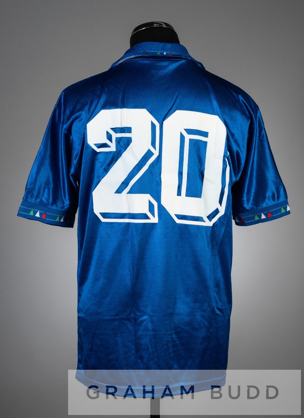 Roberto Baggio blue Italy No.20 jersey v USA, in the first U.S Cup played at Solider Field, on 6th June 1992, short-sleeved with country crest, rever