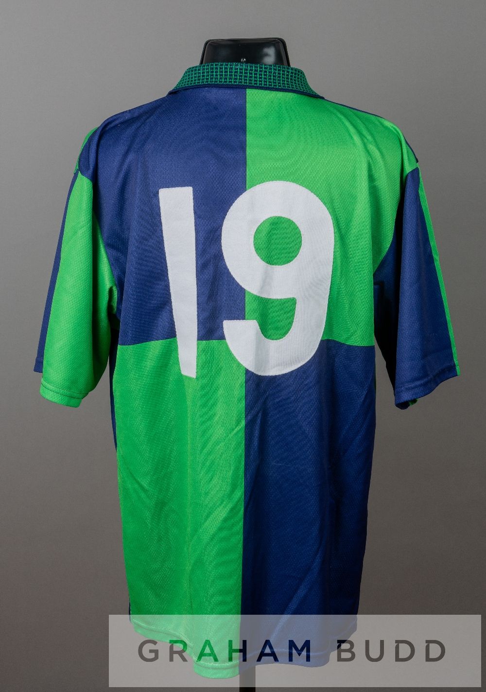 Green and navy Northern Ireland No.19 jersey, circa 1997, by Asics, short-sleeved, with NORTHERN IRELAND IRISH FOOTBALL ASSOCIATION embroidered count