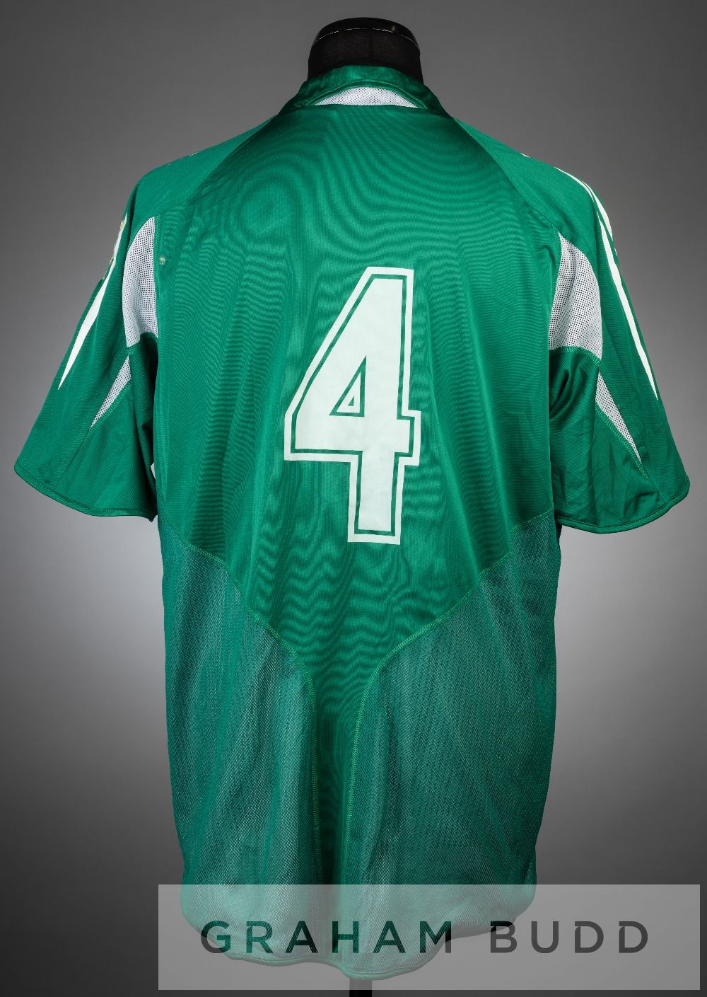 Nwankwo Kanu signed green and white Nigeria no.4 jersey, season 2004-06, short-sleeved with club crest and ADIDAS logo, reverse numbered 4, signed in