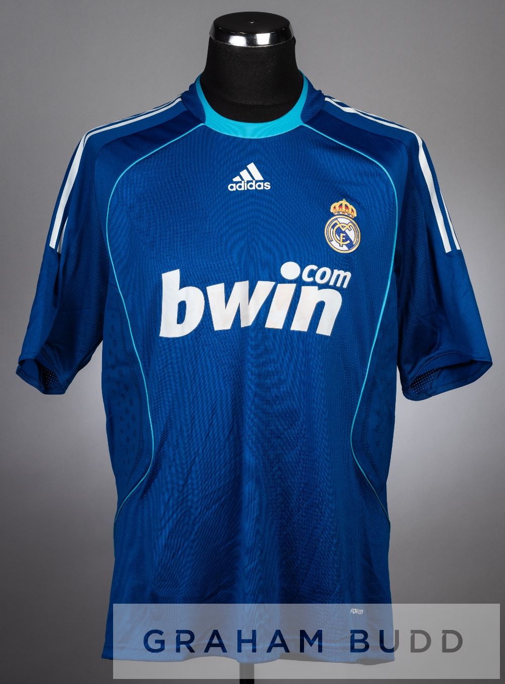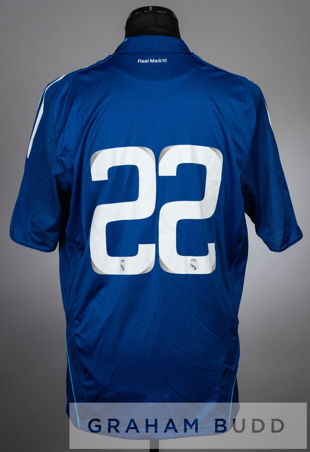 Miguel Torres blue Real Madrid no.22 jersey v Arsenal in the Emirates Cup tournament at Emirates Stadium, 3rd August 2008, short-sleeved with club crest and sponsor logo, reverse numbered 22 Arsenal defeated defeated Real Madrid 1-0, with Miguel Torres substituted off in the 46th minute.