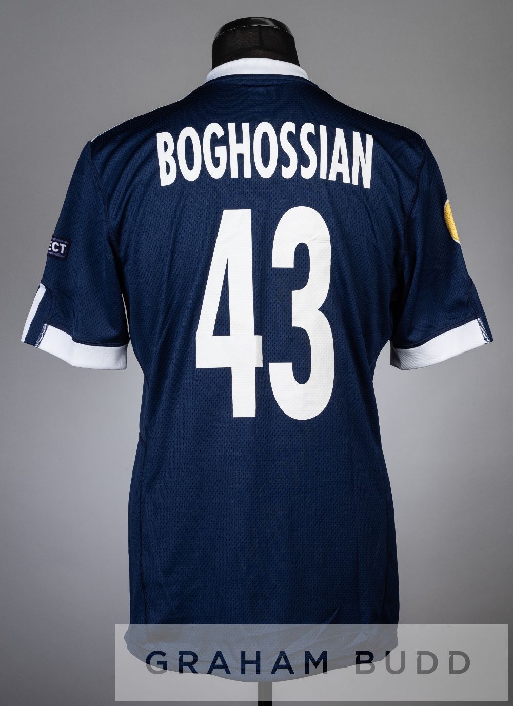 Boghossian navy and white Red Bull Salzburg no.43 jersey v Manchester City in the UEFA Europa League Group A at City of Manchester Stadium, 1st December 2010, short-sleeved with UEFA EUROPA LEAGUE and RESPECT sleeve badges, club crest and sponsor logo, reverse lettered BOGHOSSIAN Manchester City defeated Salzburg 3-0, with Joaquin Boghossian yellow carded in the 45th minute.