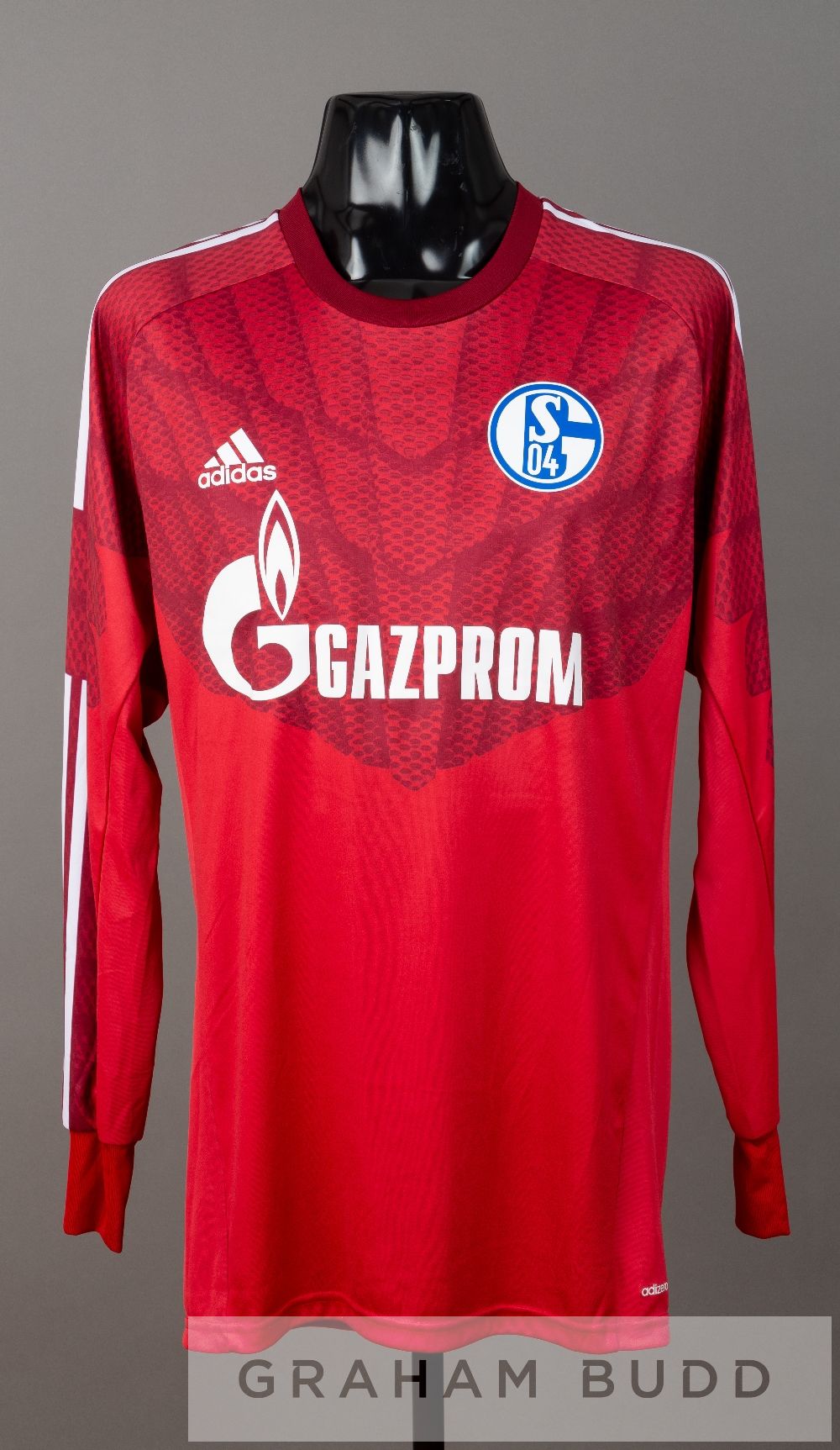 Ralf Fahrmann red FC Schalke 04 no.1 goalkeeper's jersey v Tottenham Hotspur in pre-season friendly at White Hart Lane, 9th August 2014, long-sleeved with club crest and sponsor logo, reverse lettered Fahrmann Tottenham Hotspur defeated FC Schalke 04 2-1.