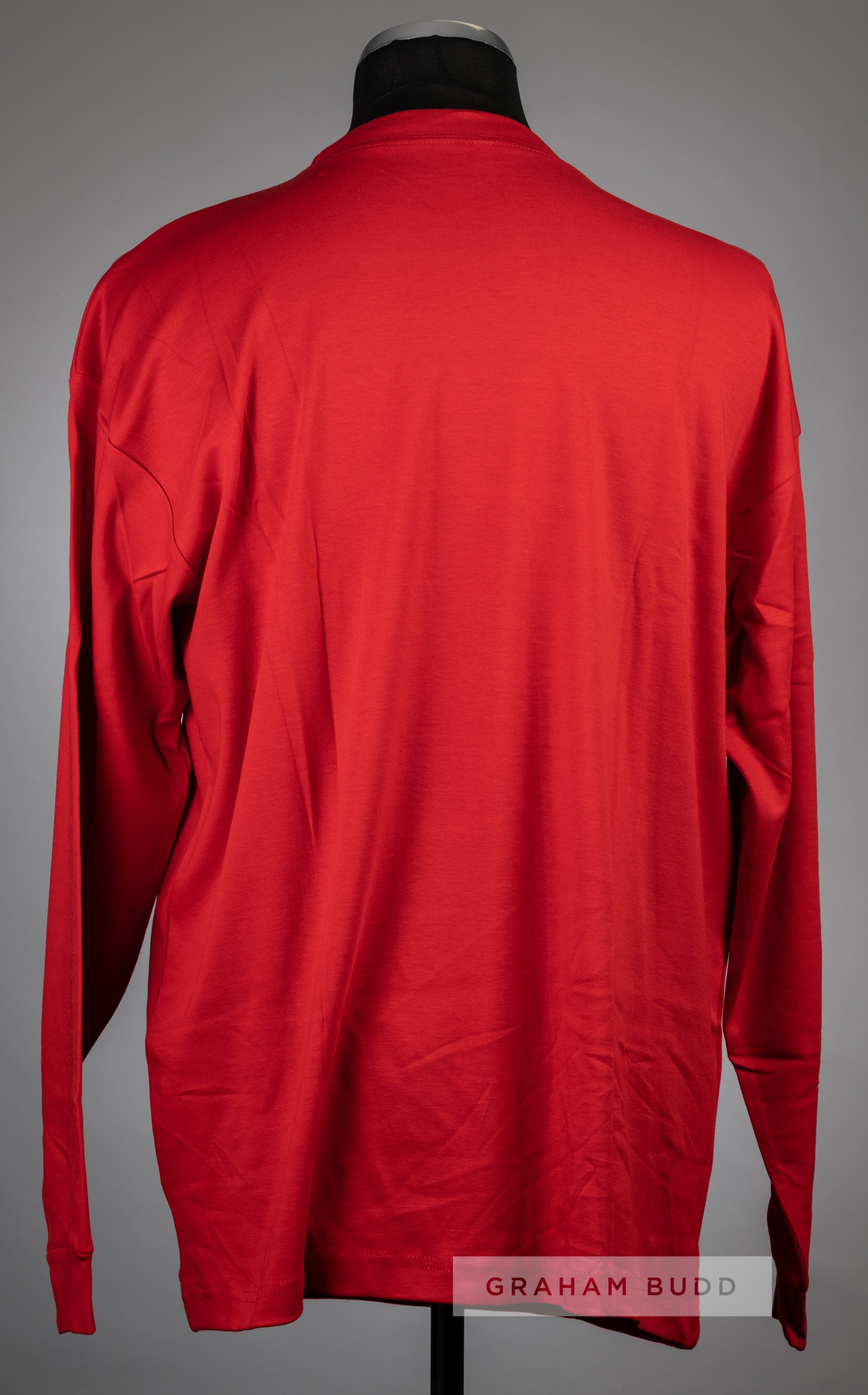 Geoff Hurst & Martin Peters signed red 50th anniversary 1966 England World Cup Winners commemorative jersey, signed in black marker pen on front, with Sporting Legends COA, size L