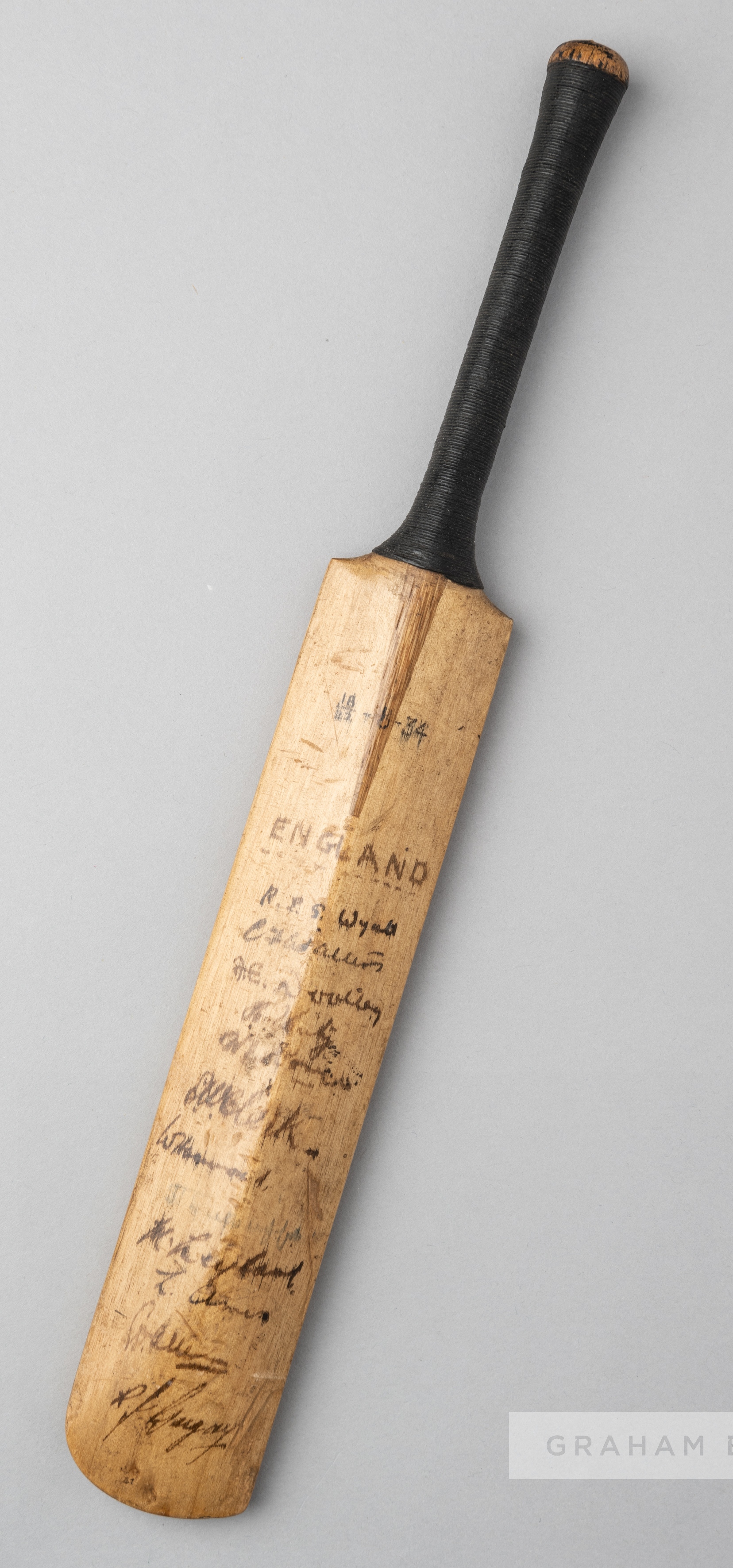 The Ashes 5th test England v Australia signed miniature cricket bat, held at the Oval on 18th August 1934, the Imperial Driver Gradidge Super bat sig