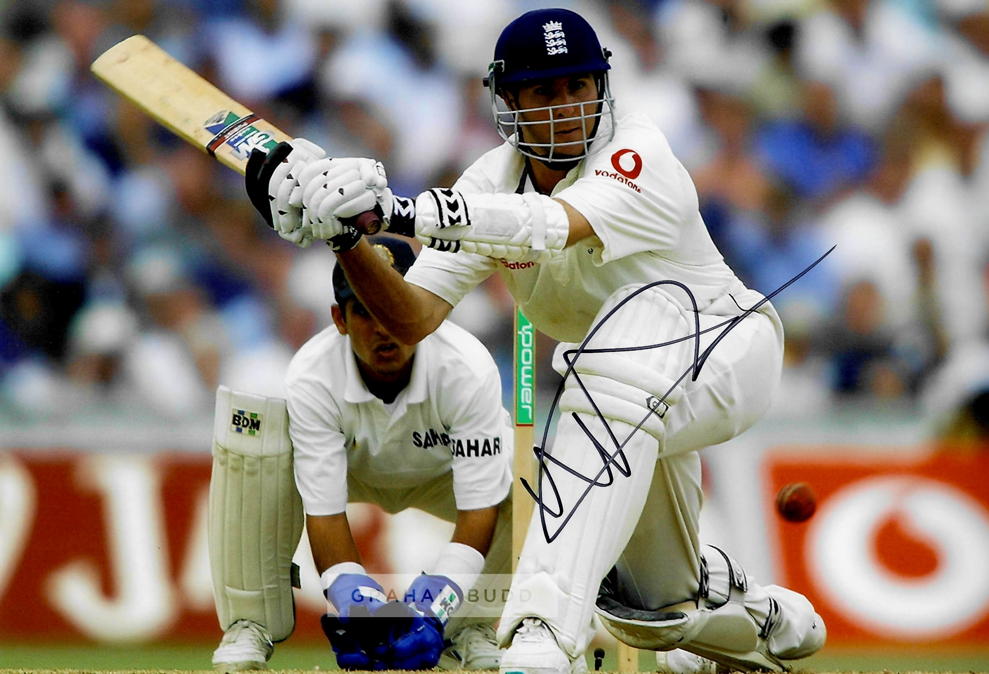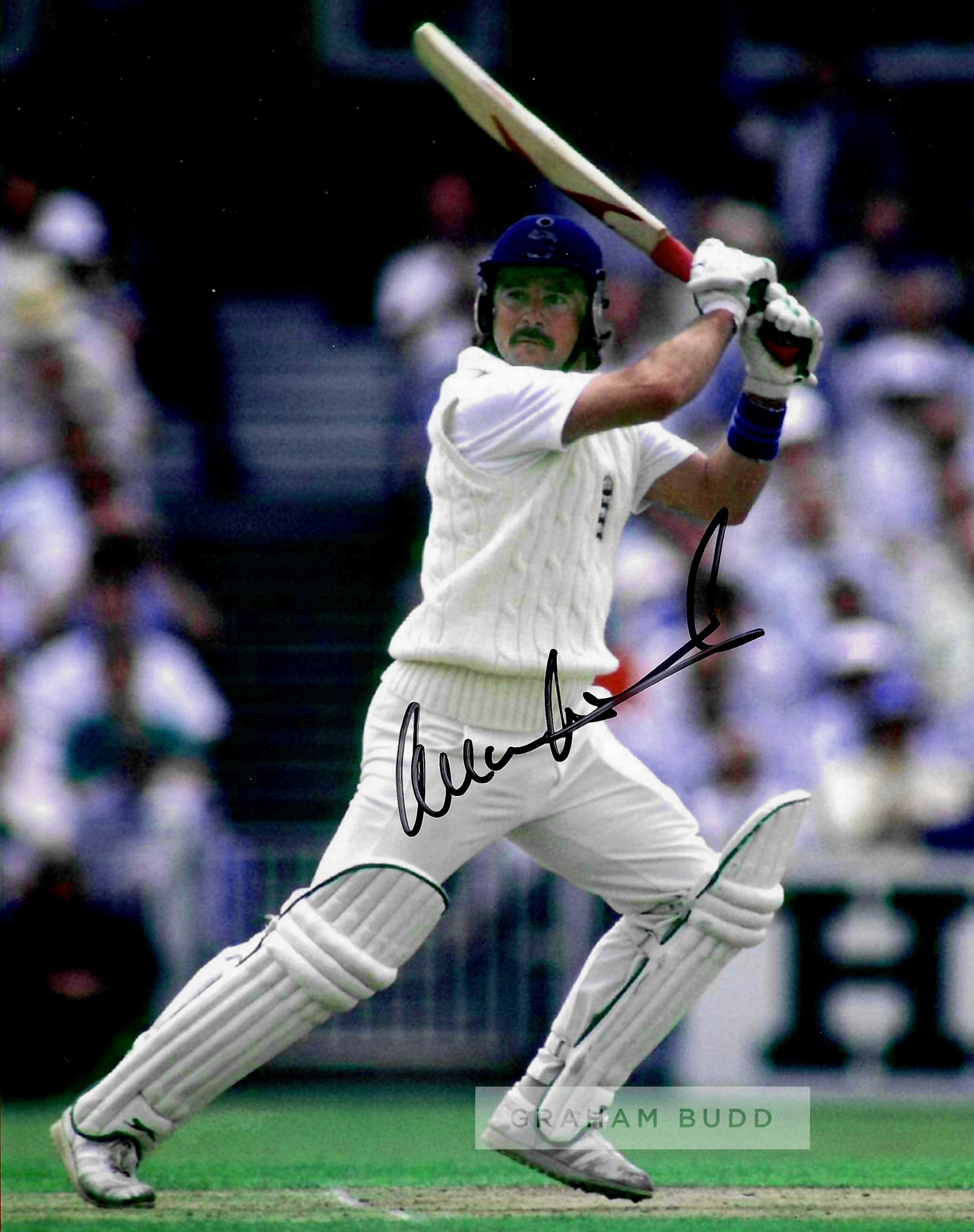 Collection of signed photographs of former England Cricket legends, comprising Alec Stewart OBE; Mike Brearley OBE; Michael Atherton OBE; Paul Collingwood MBE, OBE; Phil Tufnell; Graham Thorpe MBE; Michael Vaughan OBE; Nasser Hussain OBE; all 8 by 12in. and Allan Lamb; David Gower, both 8 by 10in., with COA and photograph of signings, (10)