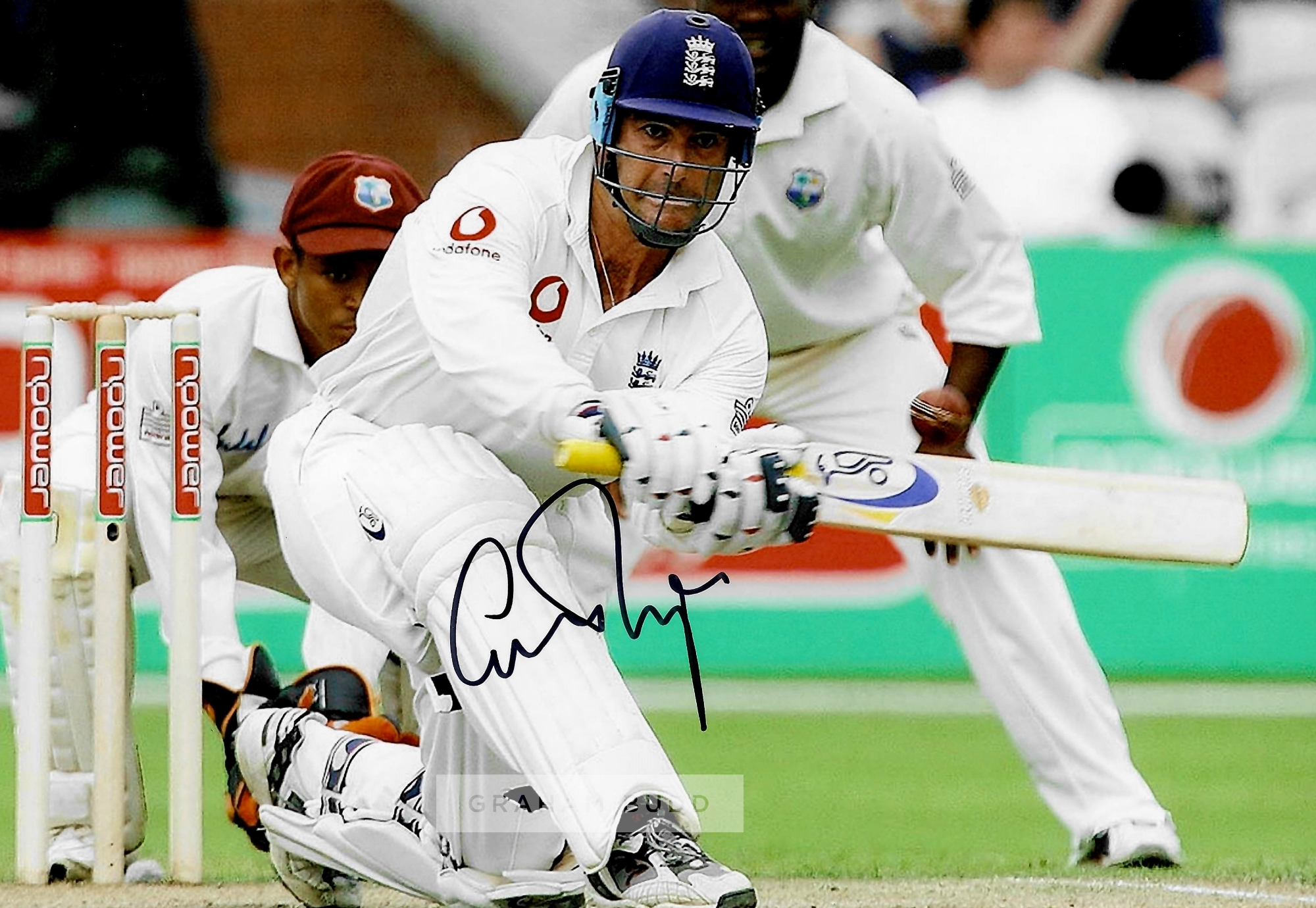 Collection of signed photographs of former England Cricket legends, comprising Alec Stewart OBE; Mike Brearley OBE; Michael Atherton OBE; Paul Collin