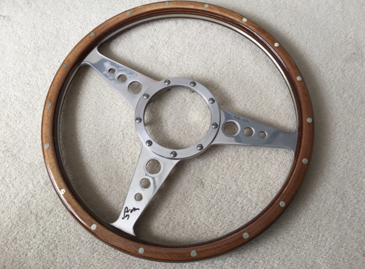 Stirling Moss signed wooden Moto Lita steering wheel, This steering wheel is a contemporary manufacture of an original 1950’s design, hand made by